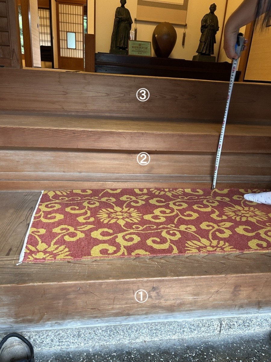 旧柏原邸入口 室内への上り口は、急な段差が3段ある 手前から①20センチ、②25.5センチ、③20センチ