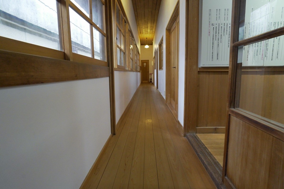 旧市川医院(企画展)側の廊下の様子 (廊下幅 最小70センチ)