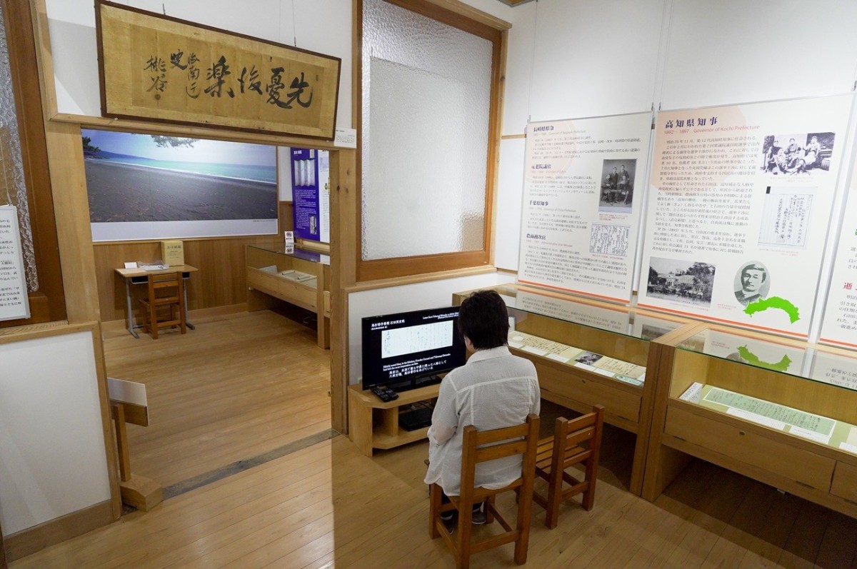 旧市川医院(企画展)側 展示を見ている様子 (最小入口幅69センチ)