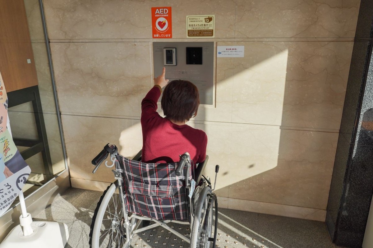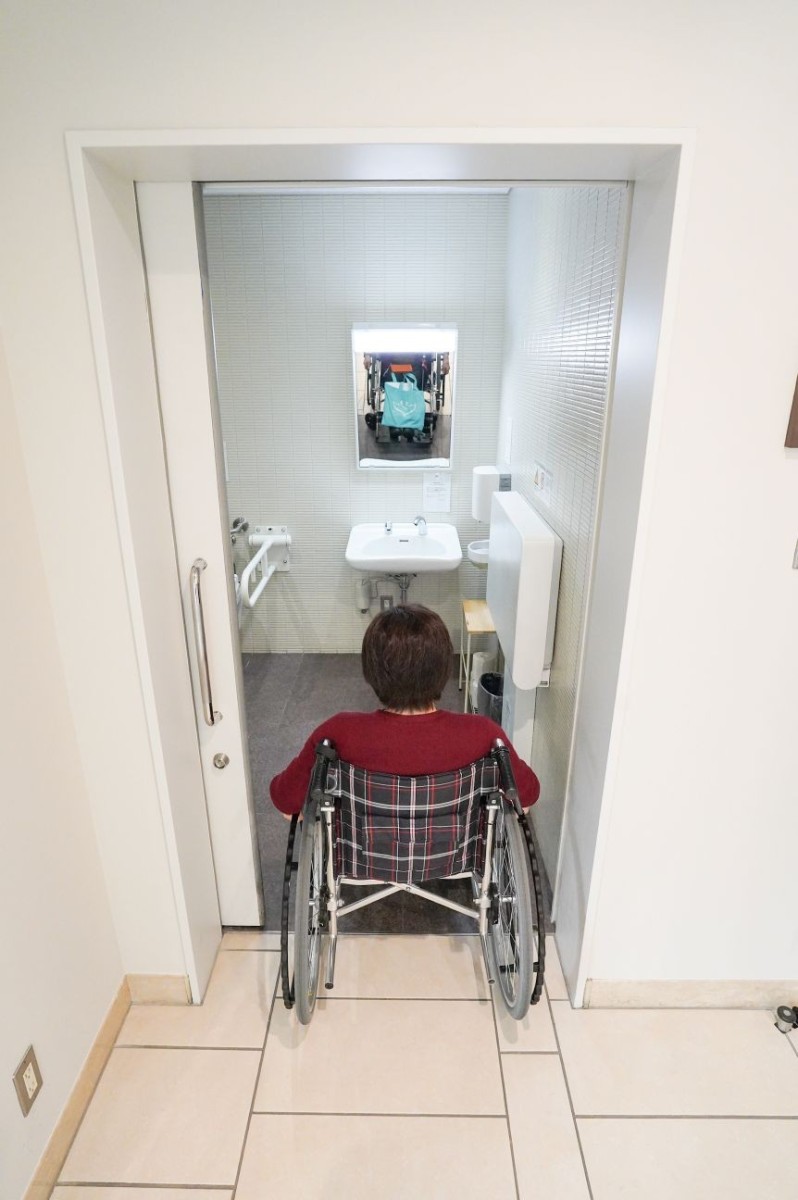 1階 車いす対応トイレの入口の様子 入口幅89センチ