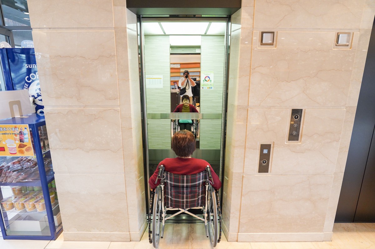 エレベーターは2基ある 向かって左側が広い 入口幅79センチ