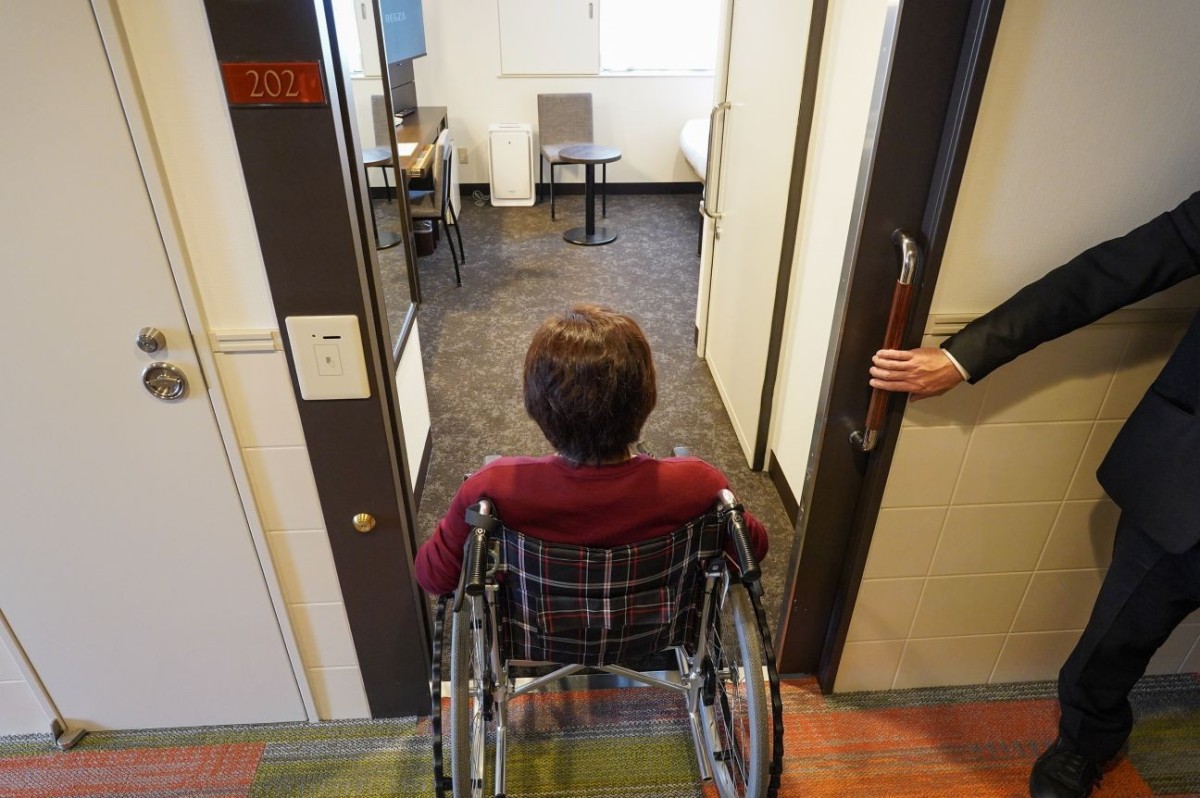2階202号室ユニバーサルツインルーム 室内はフラットで段差はない