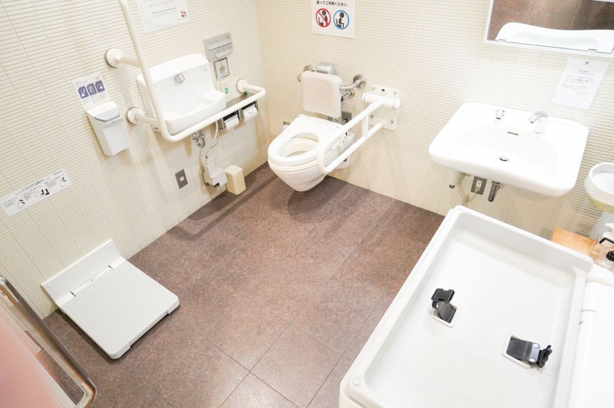 1階 車いす対応トイレの様子 ベビーシートやフィッティングボードがある