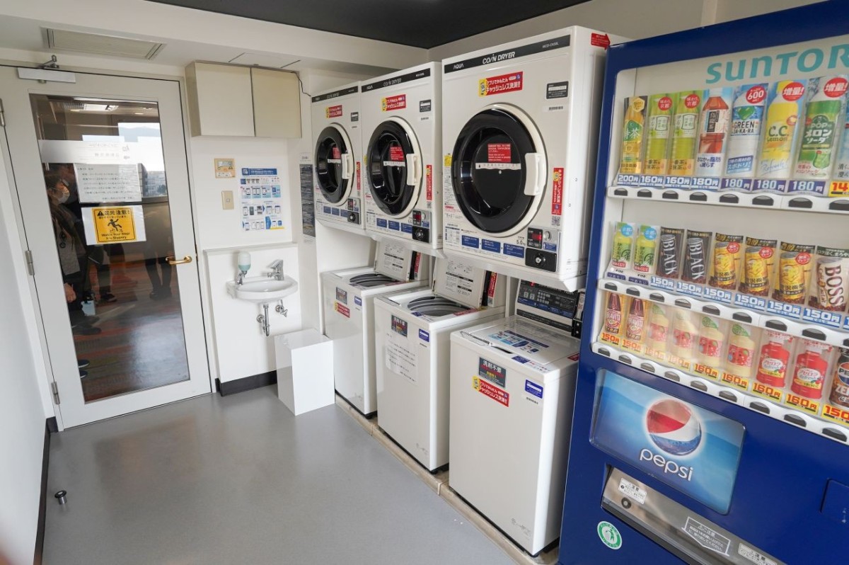 13階にあるコインランドリーと自動販売機 入口幅74センチ 自動販売機は1階北側にもある