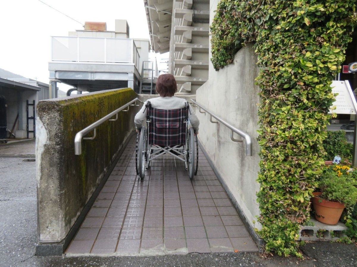 文化資料館・筒井美術館 正面入口手前のスロープの様子 斜度8度