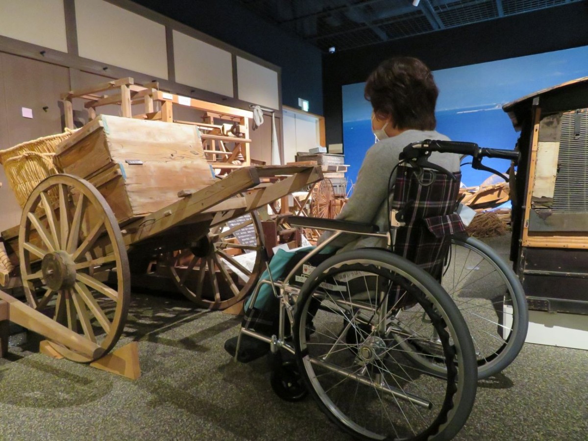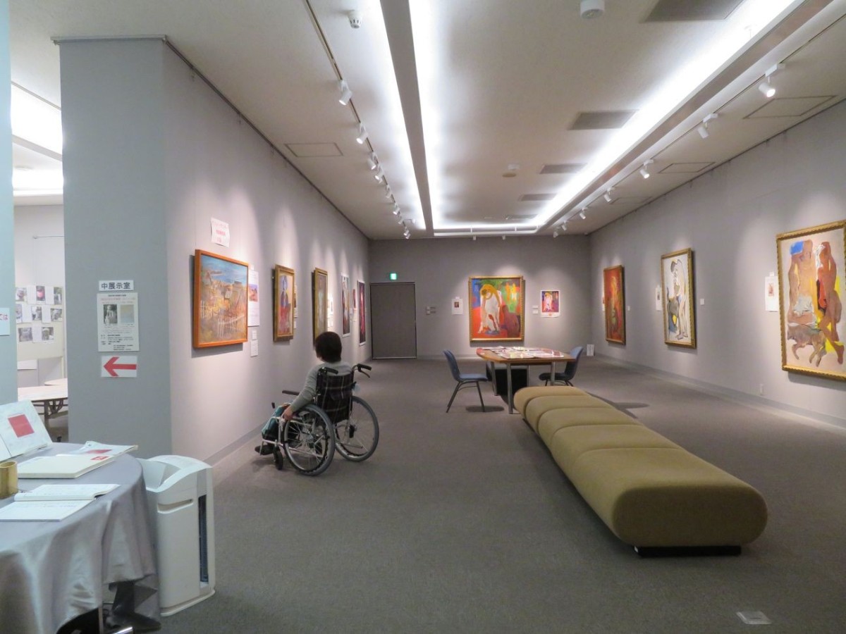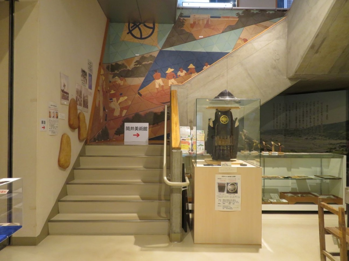 文化資料館から2階の筒井美術館への経路は階段のみ 車いすの方や階段が困難な方は、隣の生涯学習館のエレベーターをお使いください。