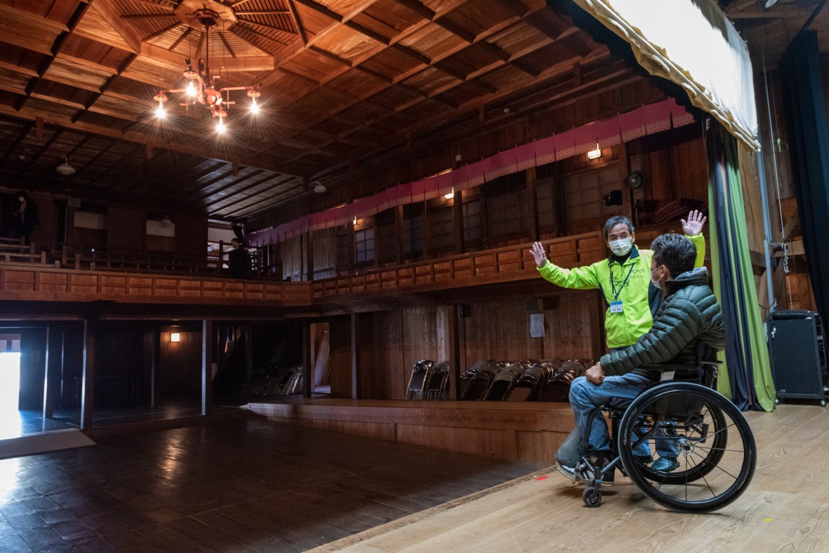 ・「ゆすはら座」は入口に段差があるため、車いす利用者は介助者が必要。スロープは建物に向かって左側にあるが、道中までは砂利敷きになっている。