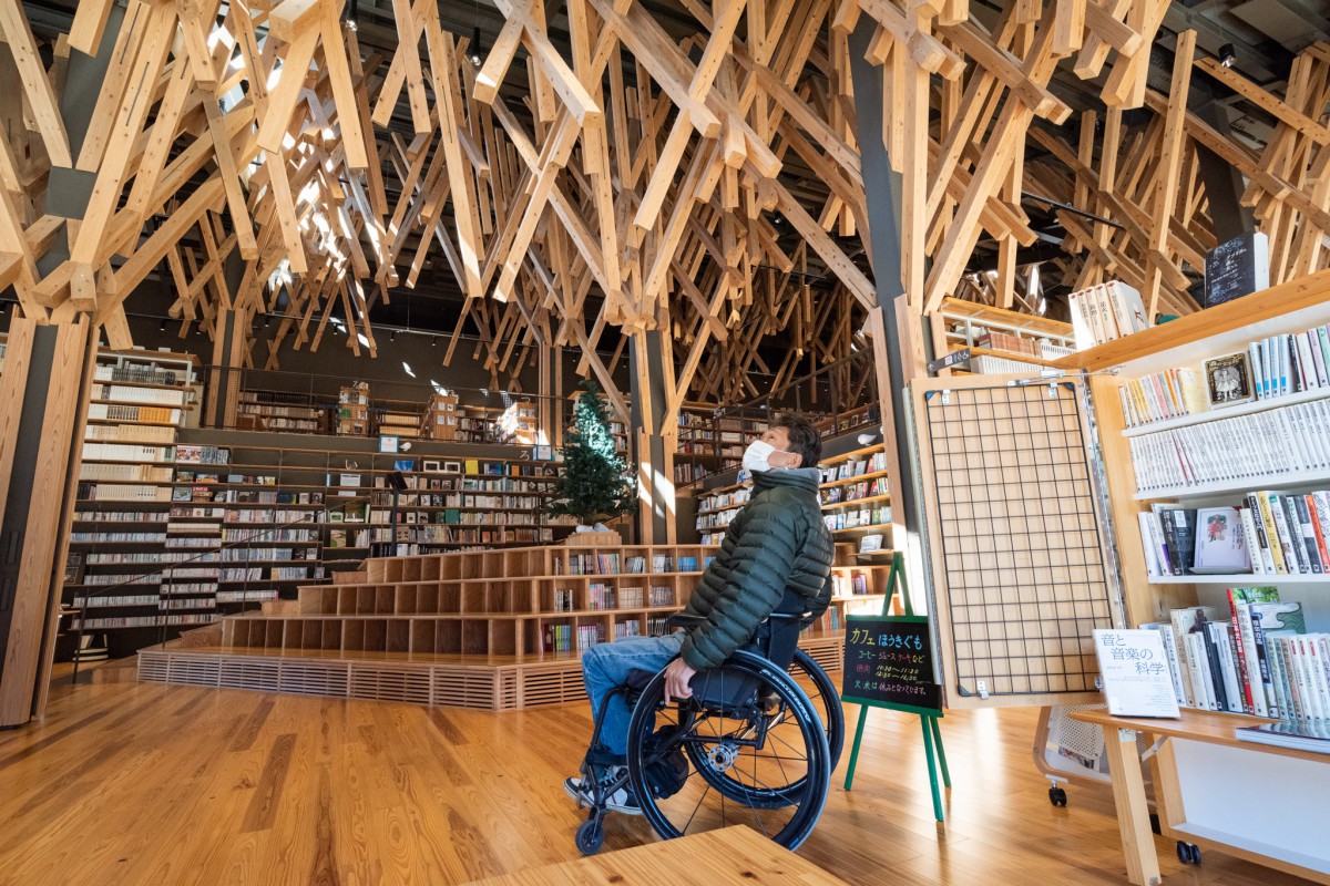 雲の上の図書館。梼原産の木材が活用されており、天井やいたるところに隈研吾氏の工夫があります。