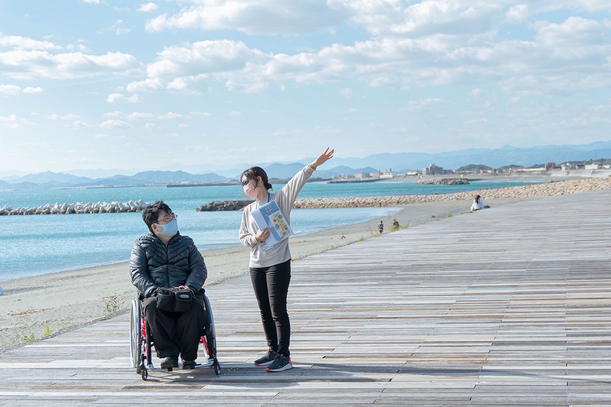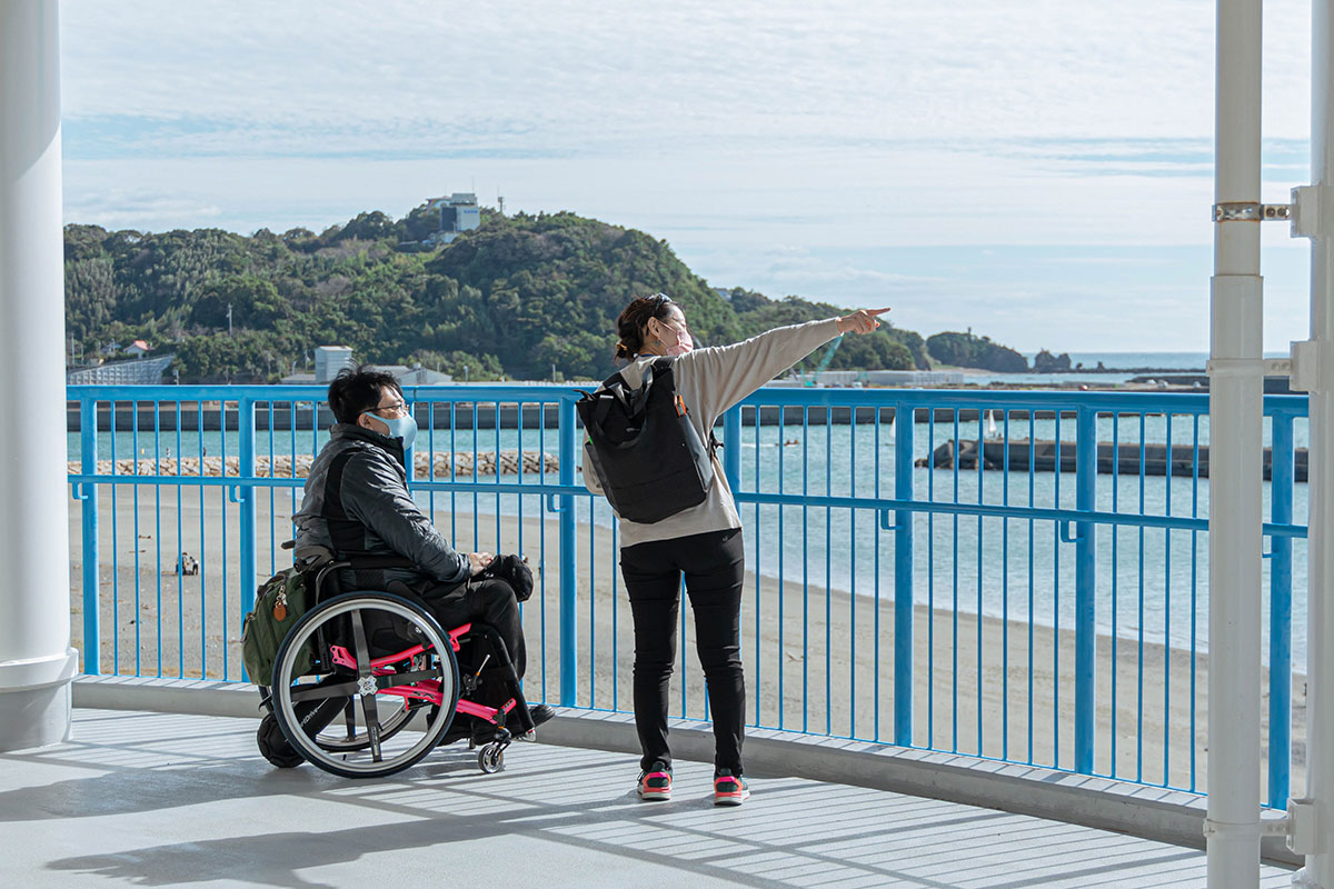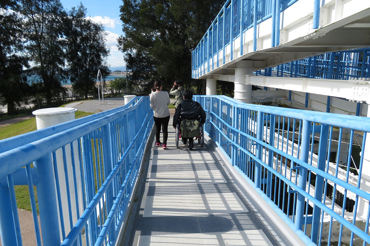 ヤ・シィパークを散策しました。訪れた日は風もなく暖かく気持ちよく過ごせました。太陽の光で海がきらめき美しかったです。敷地が広く坂もあるので介助者と一緒に訪れる方が安心できます。津波避難タワーからはタイミングが合えば手結港の可動橋が見えます。ボードウォークは砂浜に続く全長約345メートルの木の散歩道です。旅の一休みとして、四季折々の自然を感じながらのんびりと海辺を歩くのもおすすめです。