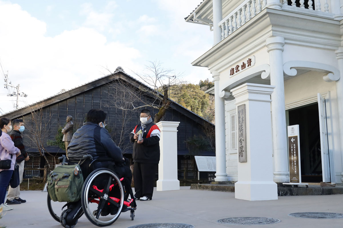 地元ガイドによるまち歩きガイドがあり、歴史散策コースをはじめ、牧野富太郎コースなどがあります。今回は、コースの中で車いすで行きやすい場所を選んで案内をしてもらいました。
