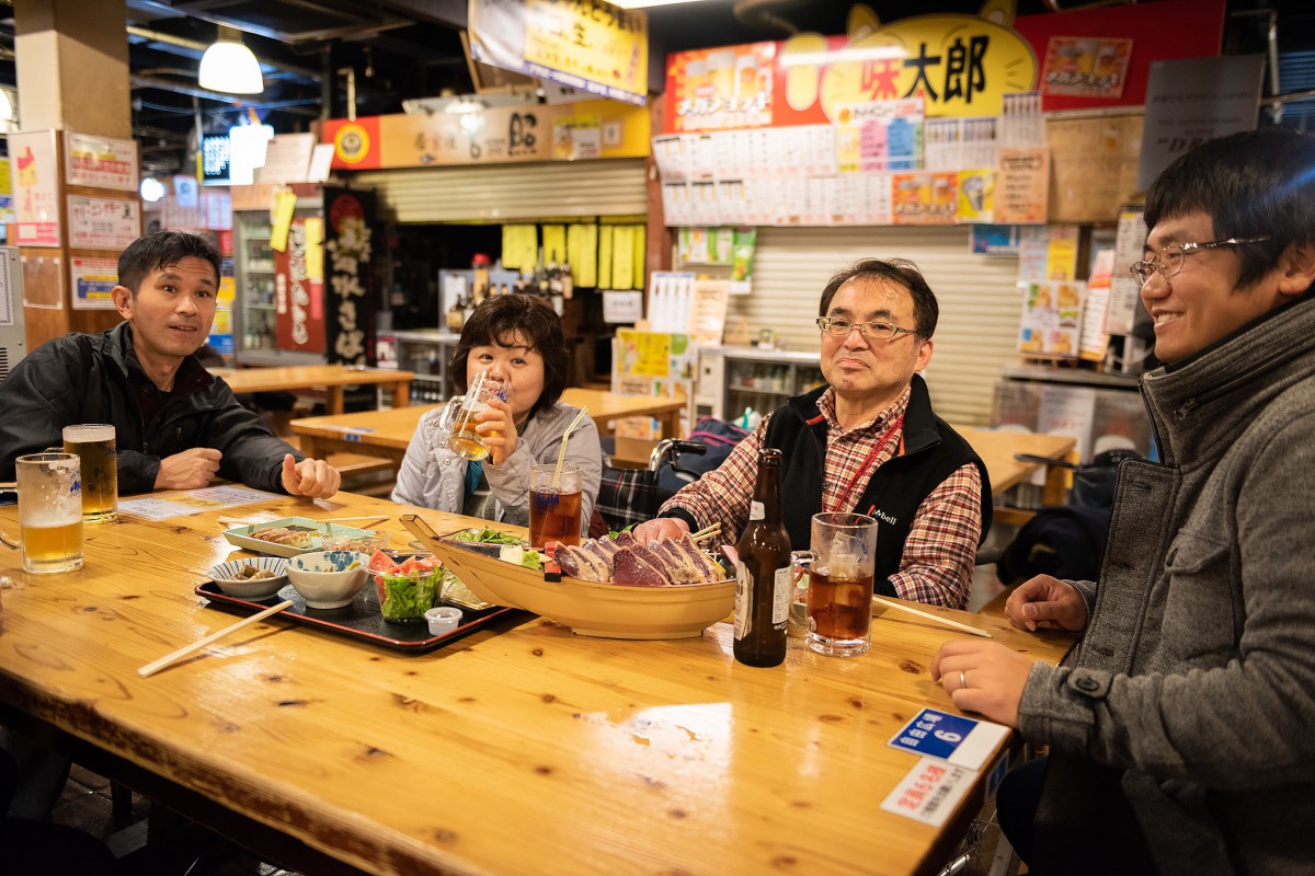 開けたスペースで、車いすやベビーカーでも通行可能なひろめ市場内。子供からお年寄りまで幅広く訪れやすい。