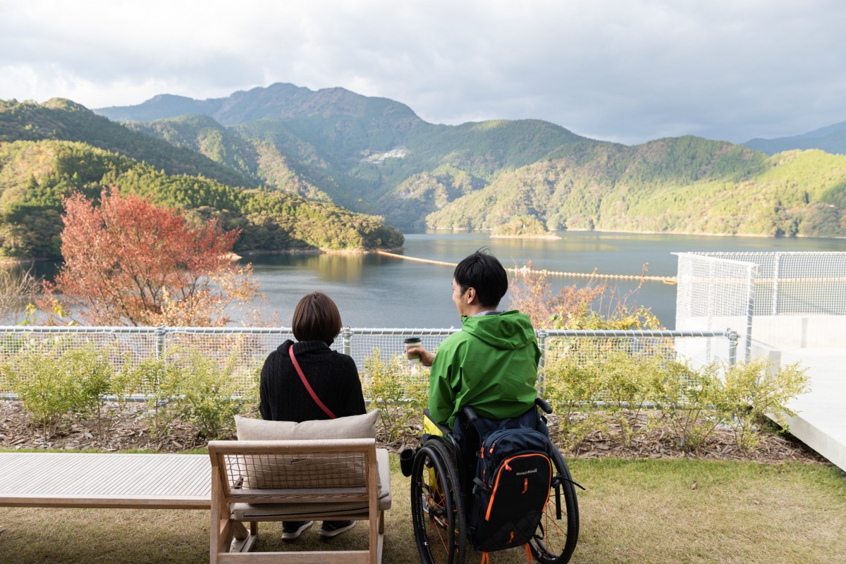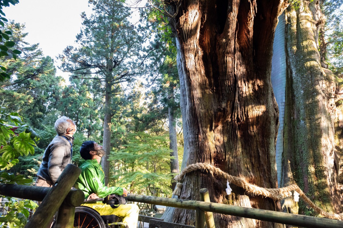 県土の84パーセントを森林が占める高知県。そんな森林に囲まれた高知県の山間部嶺北エリアは高知市内から車で45分。大豊町では、推定樹齢三千年の杉の大スギを見て、本山町の汗見川ふれあいの郷清流館では地元のそば粉でそば打ち体験!土佐町の湖の駅さめうらレイクタウンのカフェでのんびりくつろぎます。自然溢れる四国のまんなか嶺北エリアで地域の方と触れ合える体験や自然に囲まれて過ごすことができます。移動は介護タクシーを利用しました。(ツアー実施日令和2年11月)