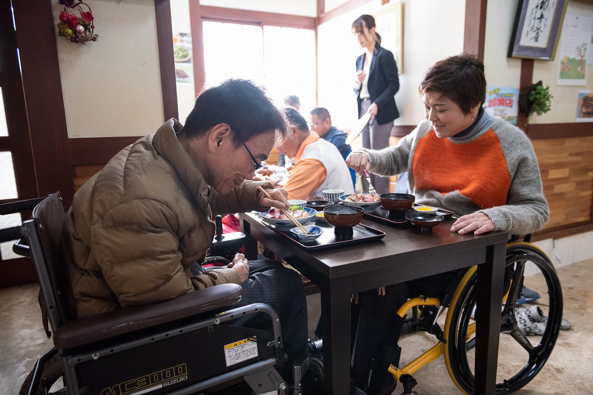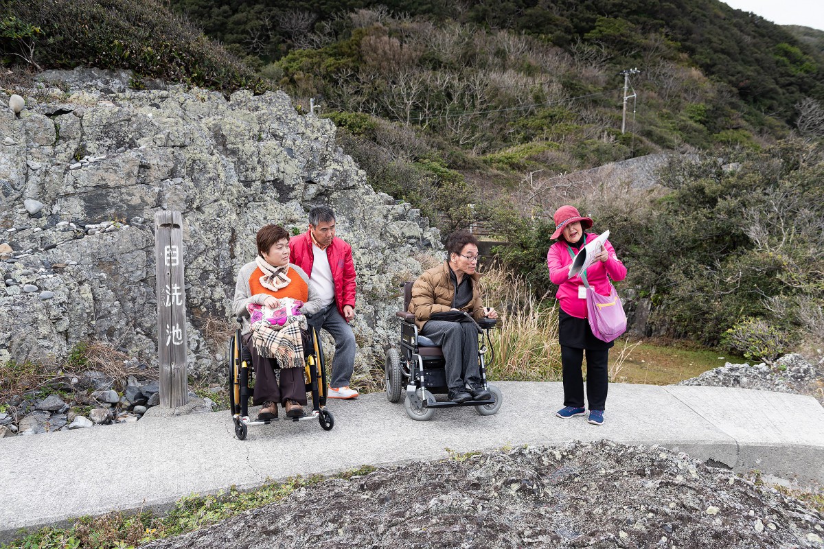 ユネスコ世界ジオパークでは、車いすでも散策可能な遊歩道を地元ガイドの方に案内していただいた。説明も丁寧でわかりやすい。車いすの方は介助者が必要。