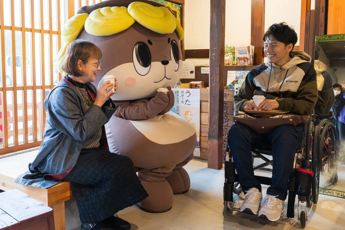 須崎市のロイロイまち歩きでは、しんじょう君が特別にお出迎え