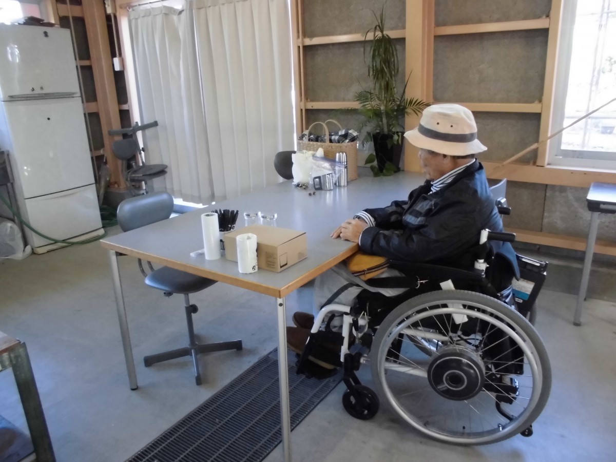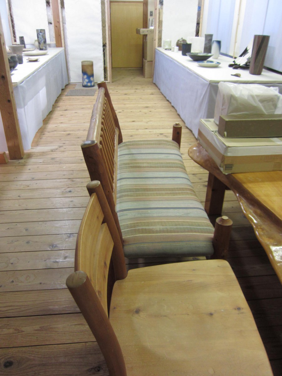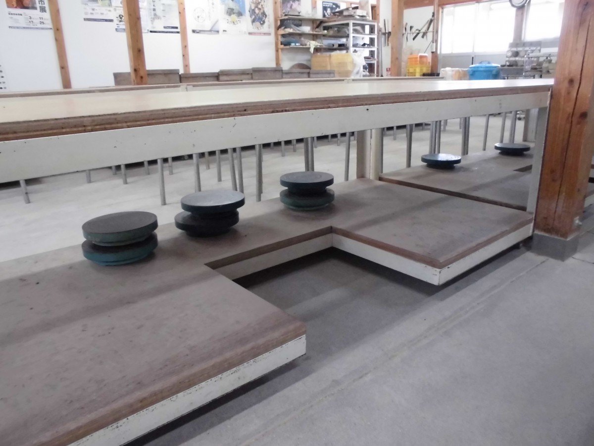 陶芸室 車いすが入れるよう足元をくりぬいた席が複数ある