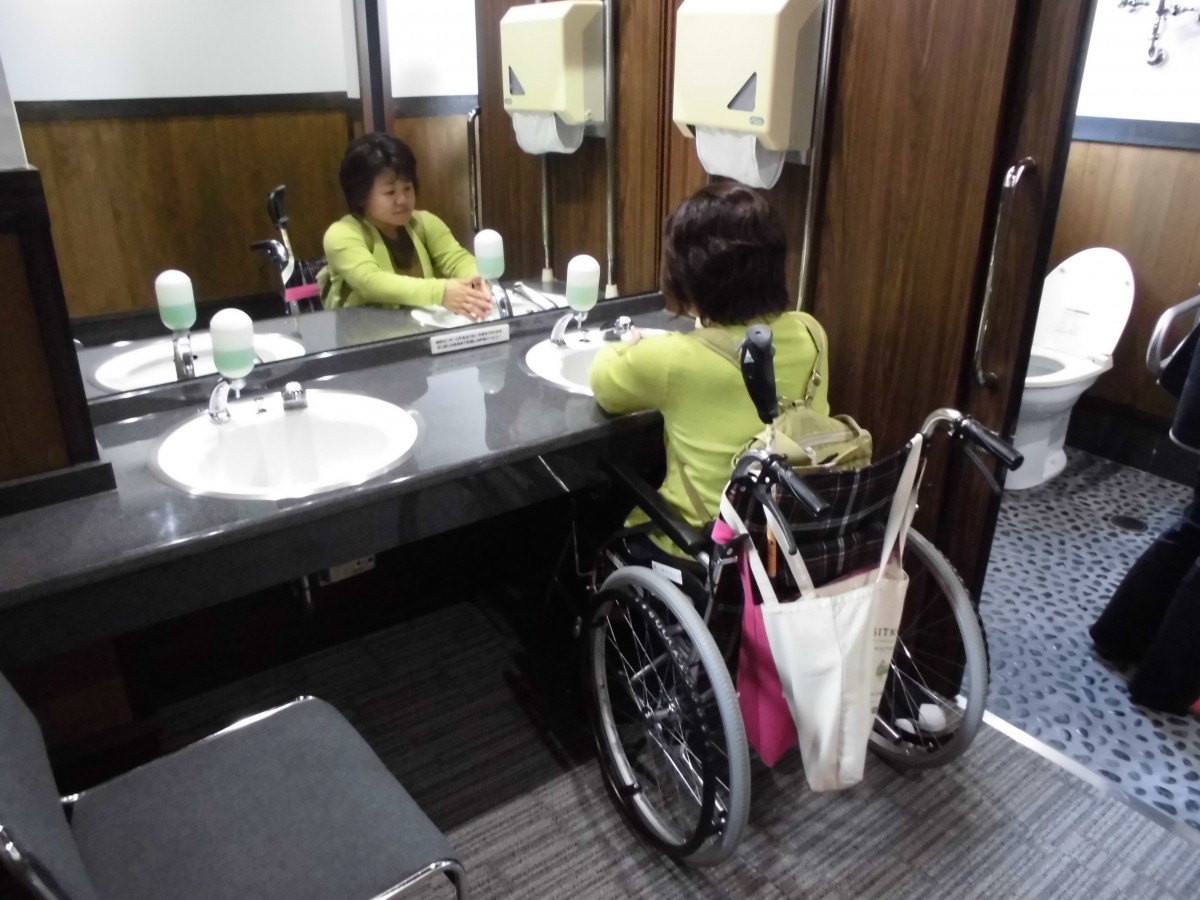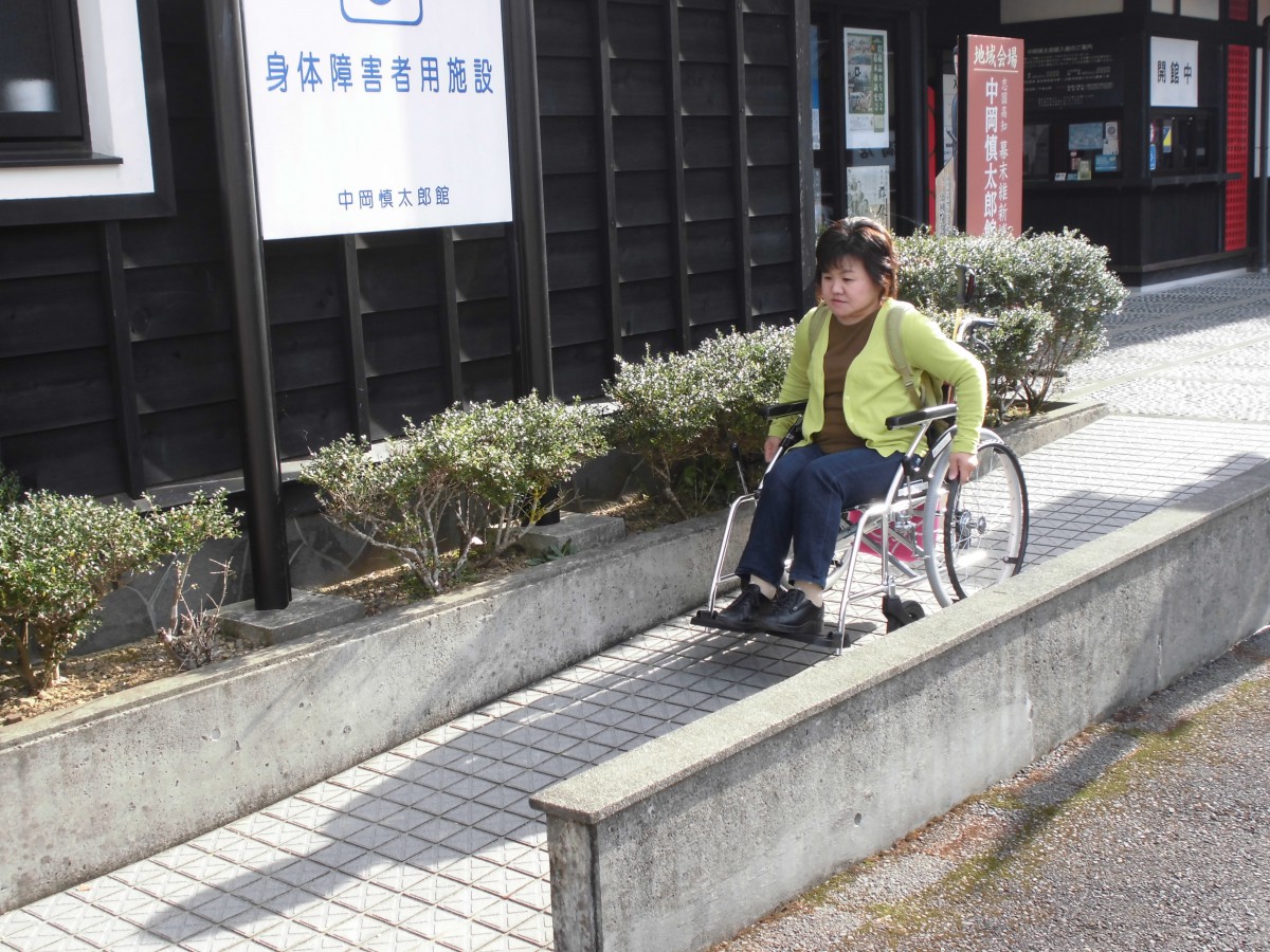 障害者専用駐車場 入口スロープのすぐ近くで降車可能