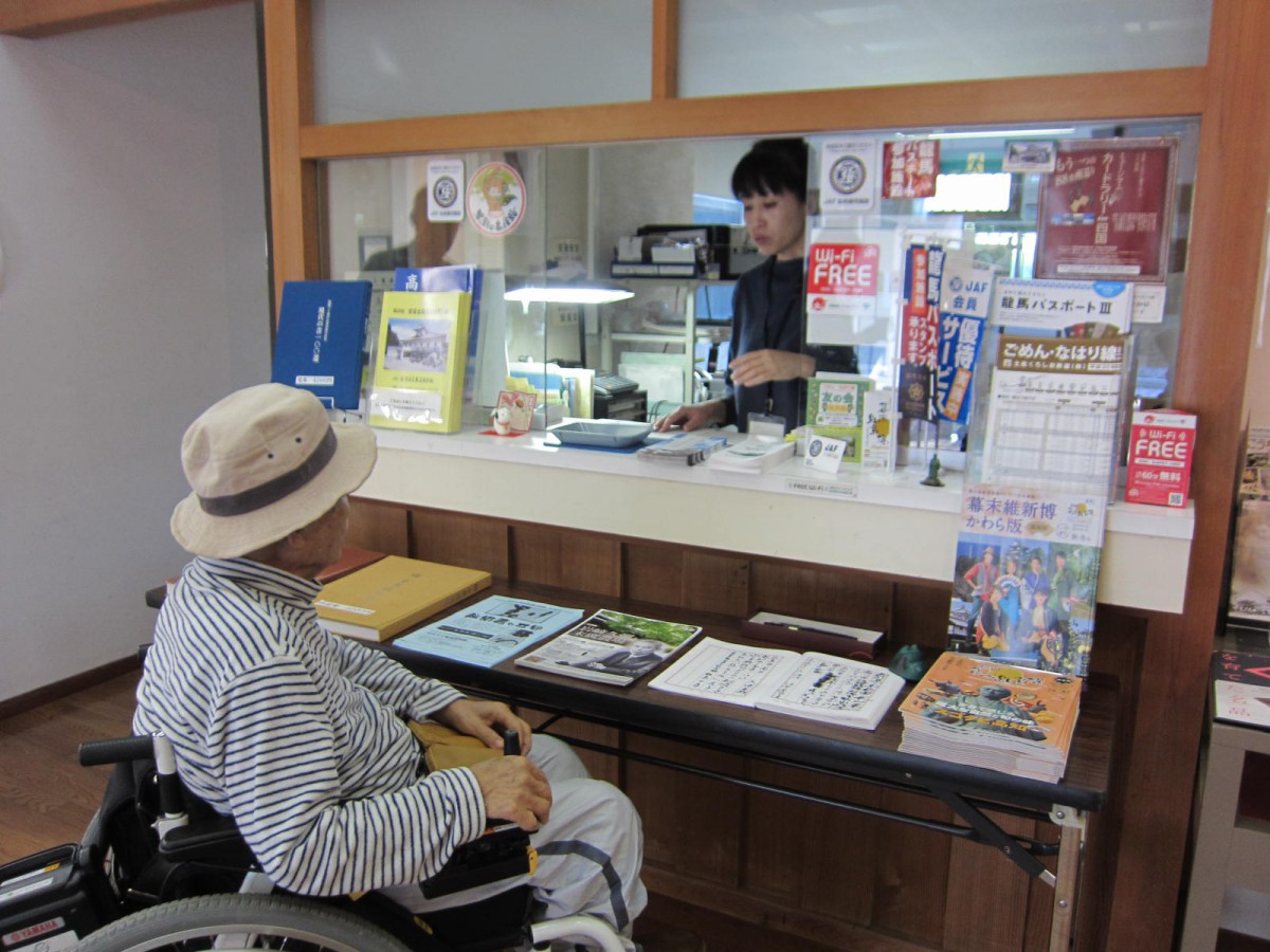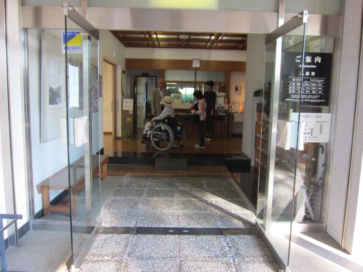 受付カウンター 建物内には靴を脱いで入るが、車いすはそのまま入って構わない