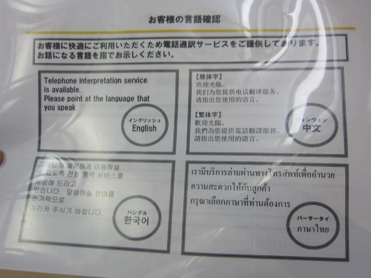 受付の多言語対応指さし一覧表