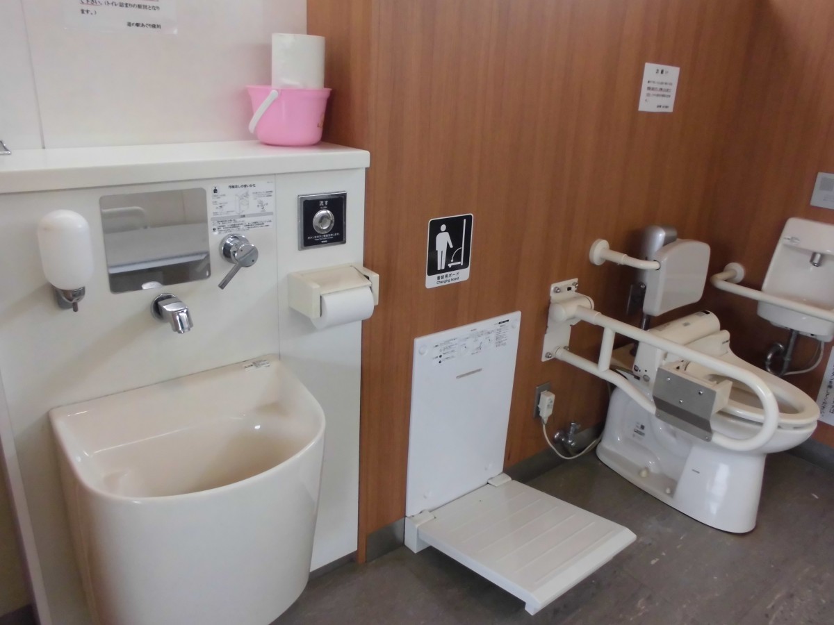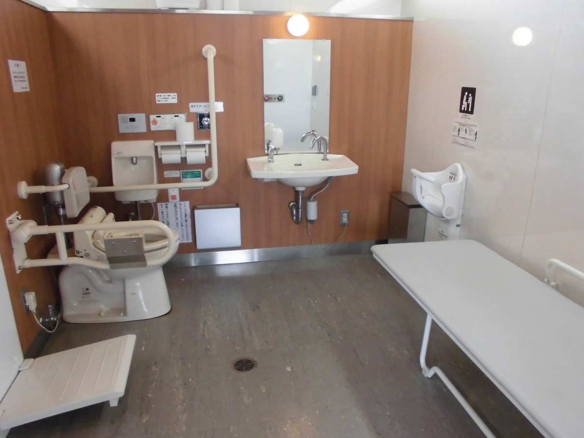 多目的トイレ 充実した設備 大人も使えるユニバーサルシートあり