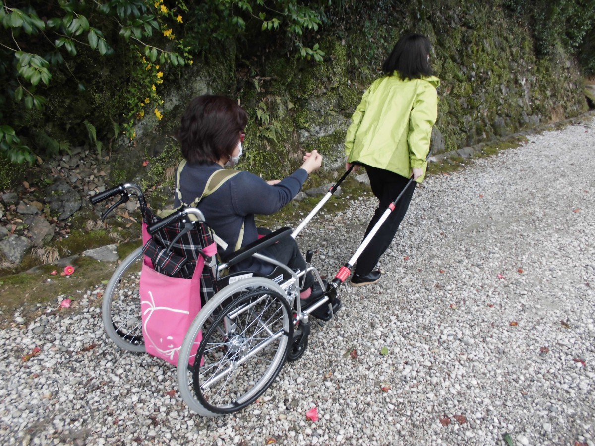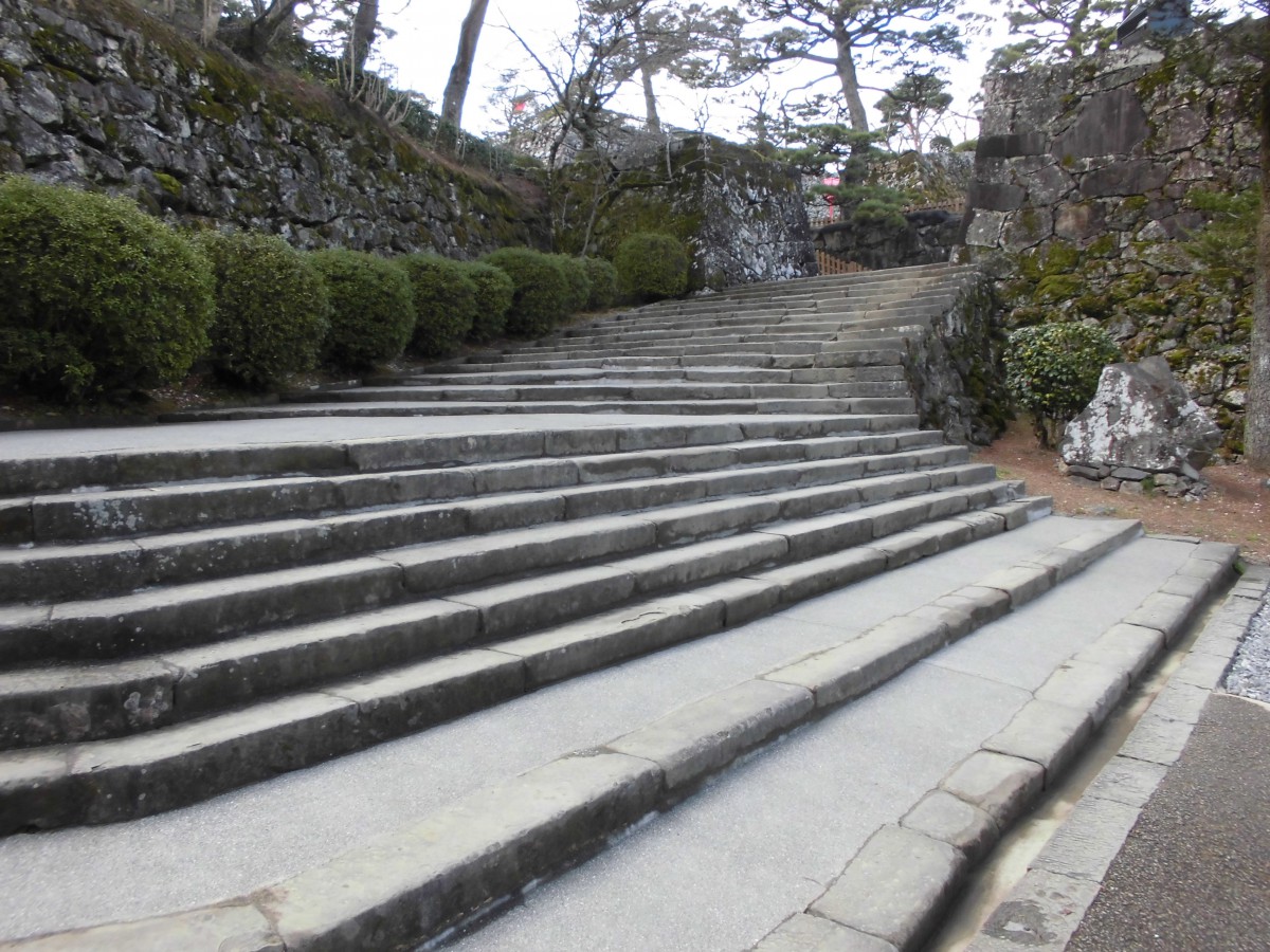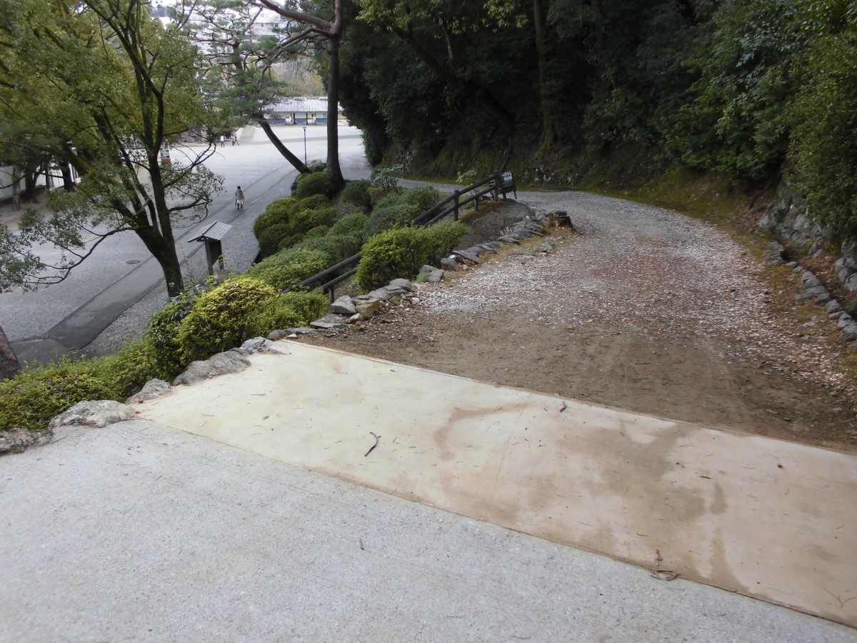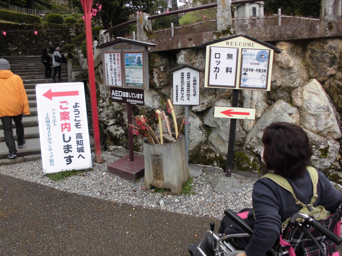 車いすの方は随伴者がいないと昇り降りが難しい 城内散策は牽引道具の使用が望ましい