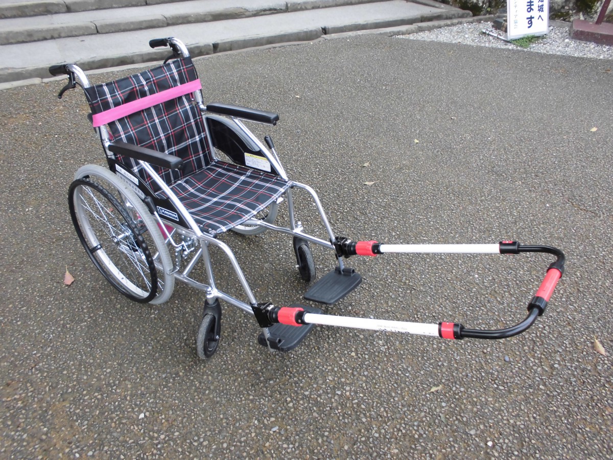 車いす牽引の道具 JINRIKI 車いすに取りつけた状態