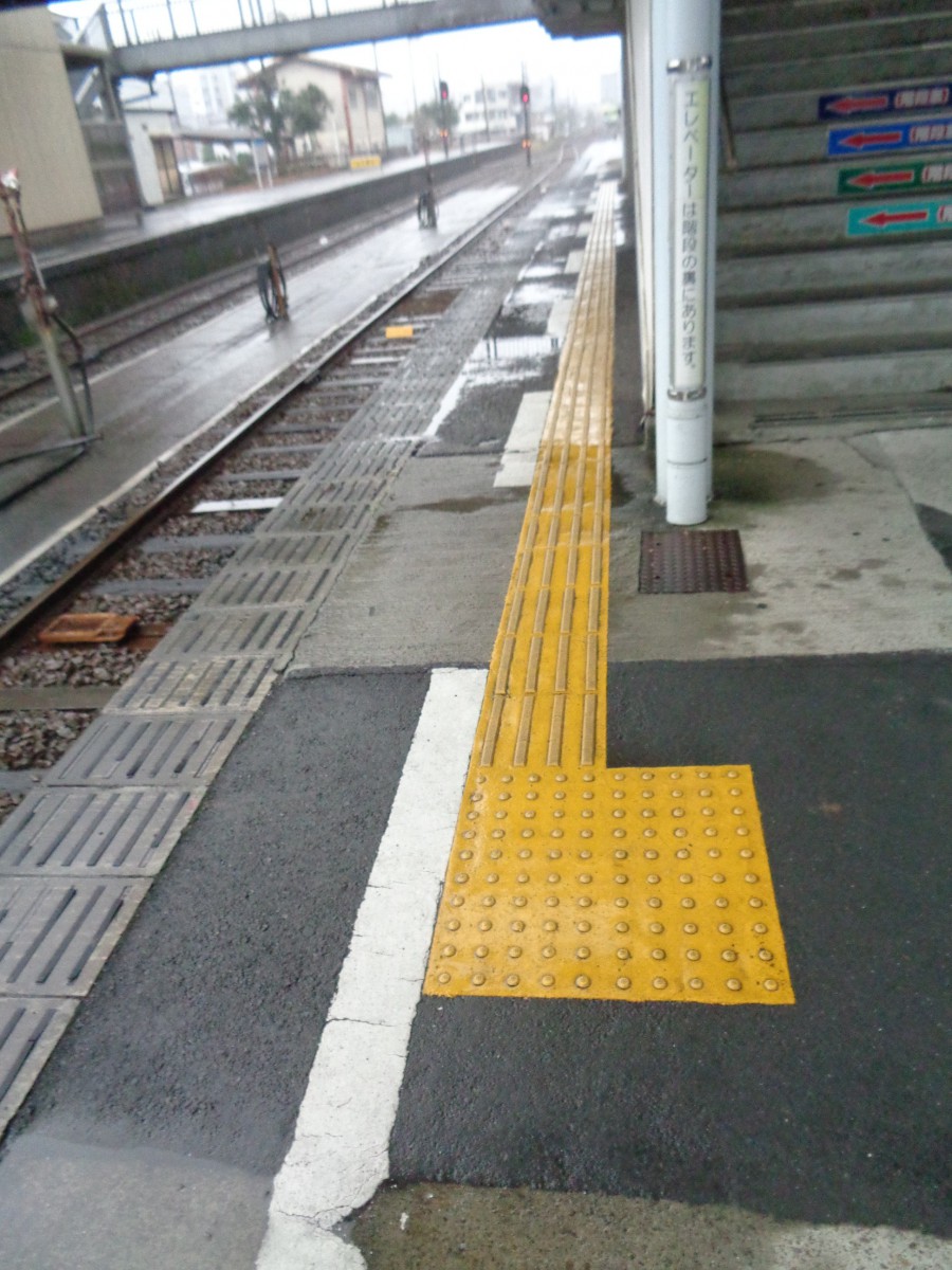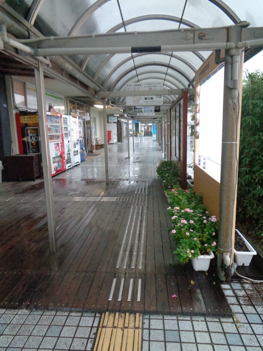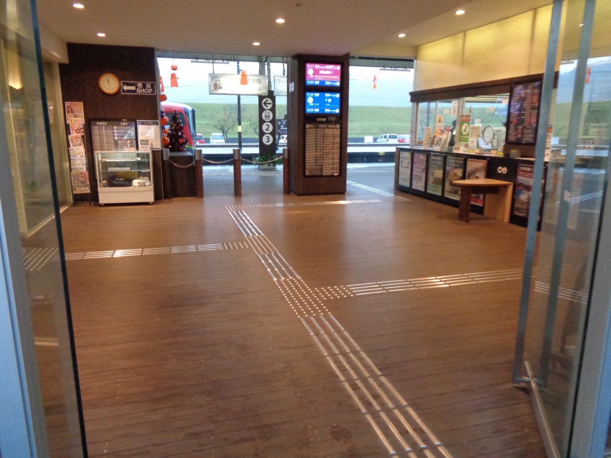 点字ブロック 駅舎の外から中の切符売り場 売店 改札へと続く