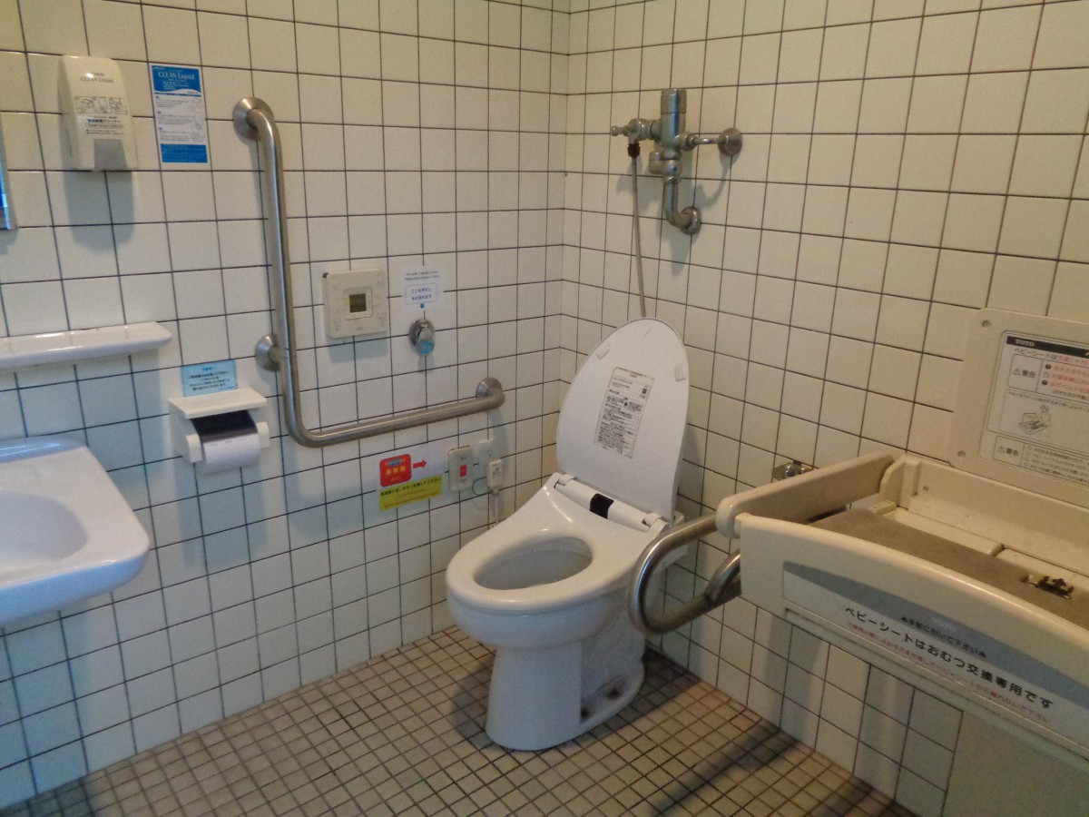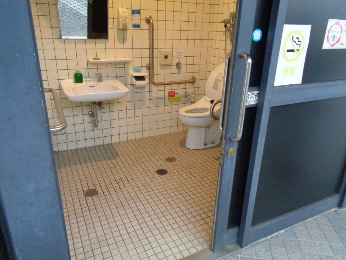 車いす対応トイレ内 設備 手すり右側U字 左側L字 駅舎ホーム内に車いす対応トイレはないのでこちらの利用をおすすめ