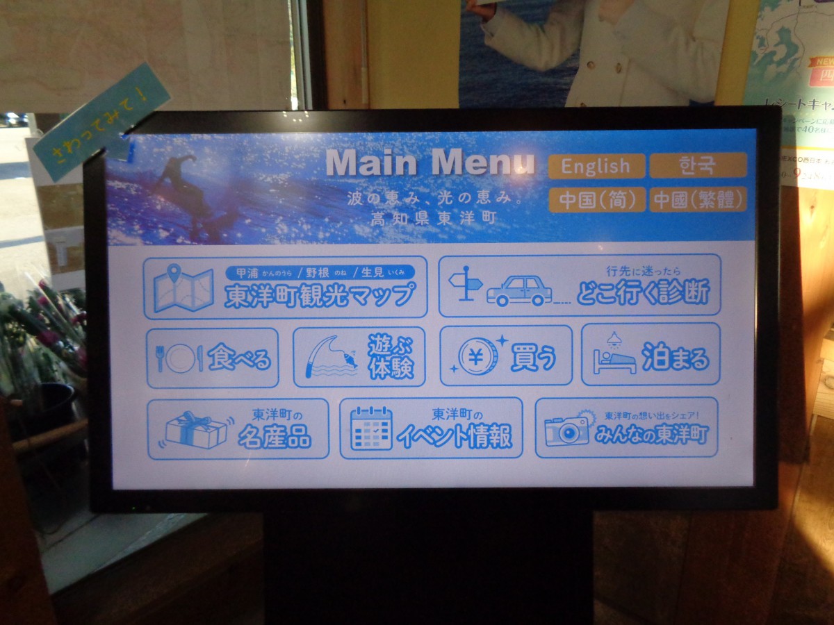 東洋町案内のタッチパネルもある 多言語対応