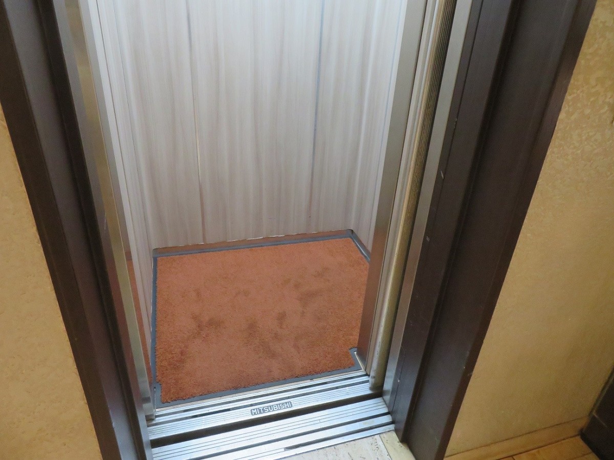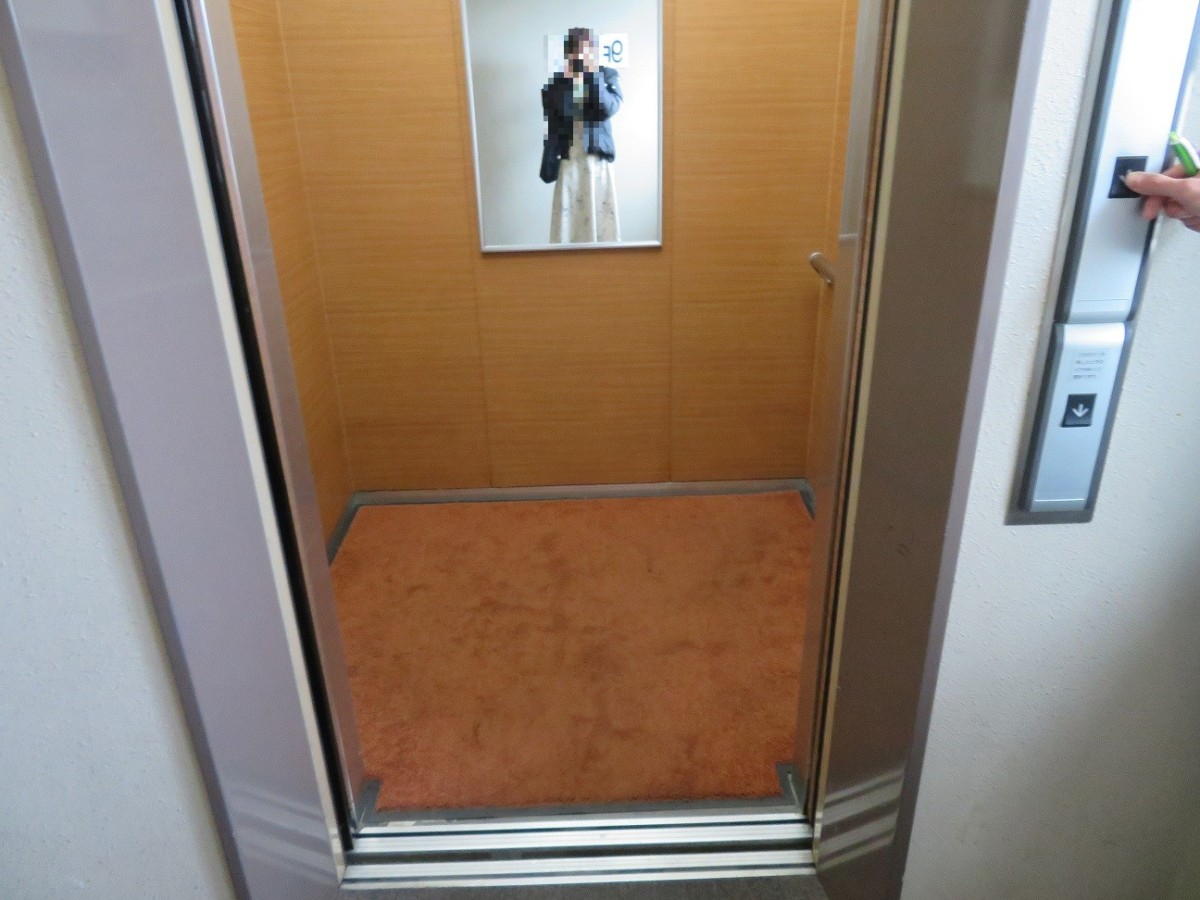 南館 エレベーター 入口幅90センチ 手すり、後方確認用鏡あり