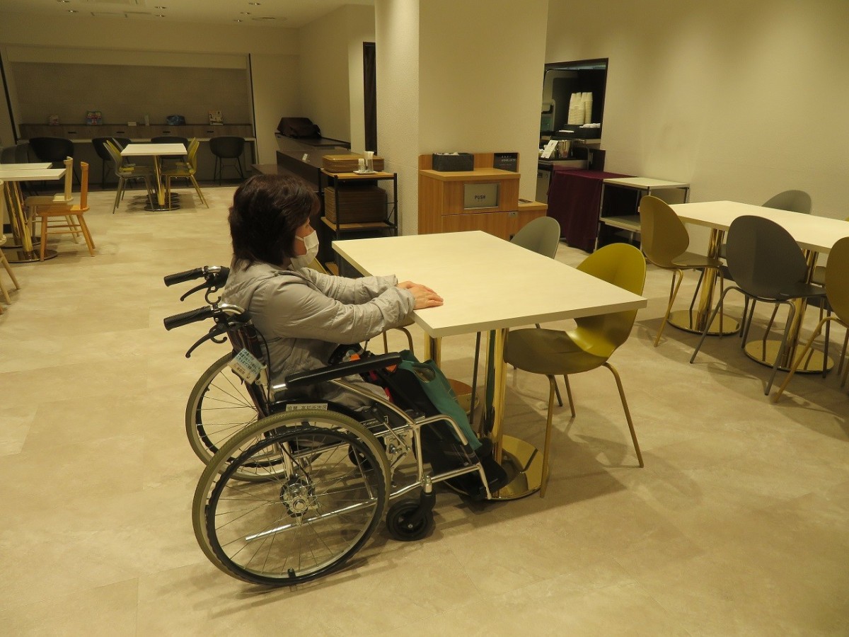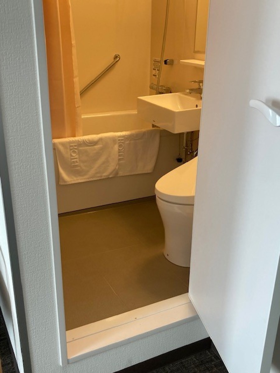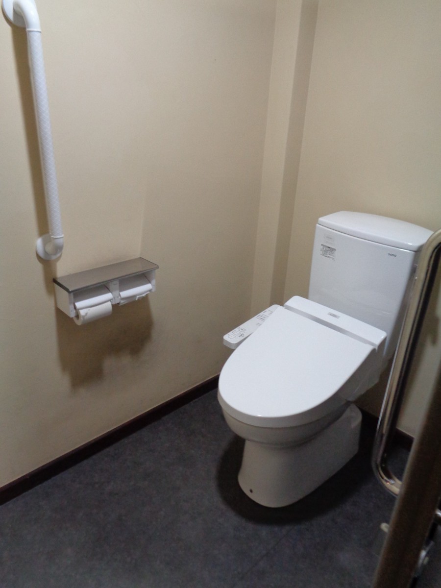1階 車いす対応トイレ(男性用一般トイレ内にある) 外扉の入口幅68センチ 車いす対応トイレ個室の入口幅75センチ 通常は個室内に荷物置きの棚があるため、車いすでの利用時は介助者、ホテルのスタッフの方に移動をお願いすることをおすすめ