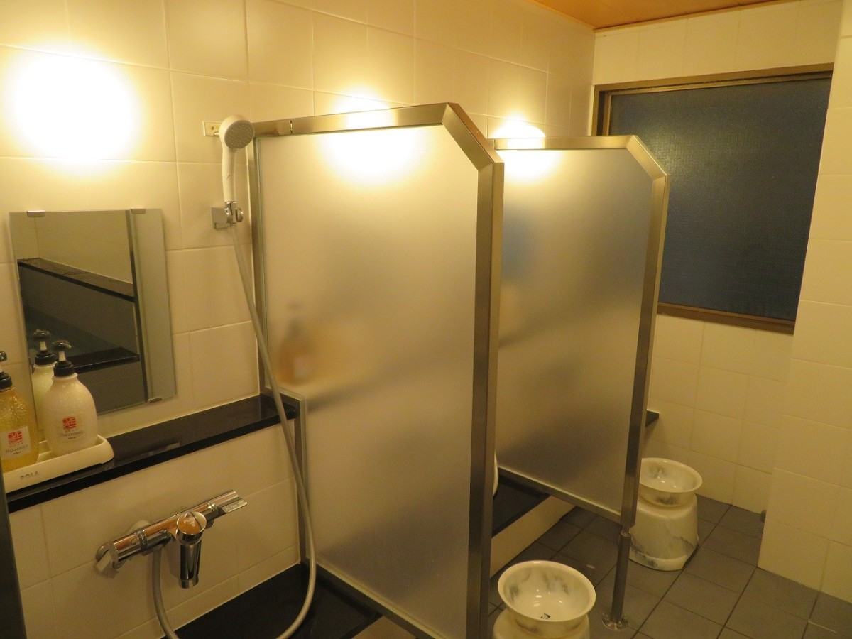 北館 4階 大浴場(女性用) 浴室の様子 入口 開き戸 入口幅63センチ 段差15センチ