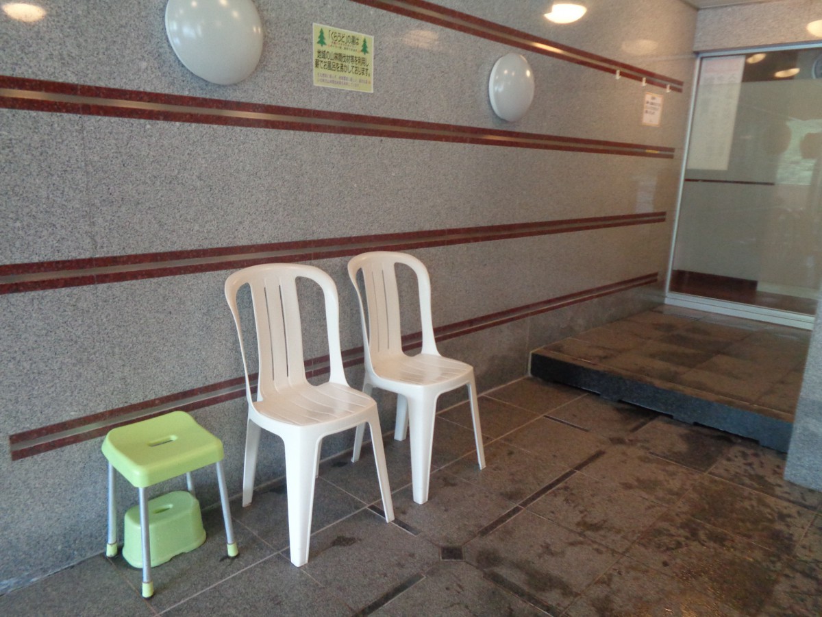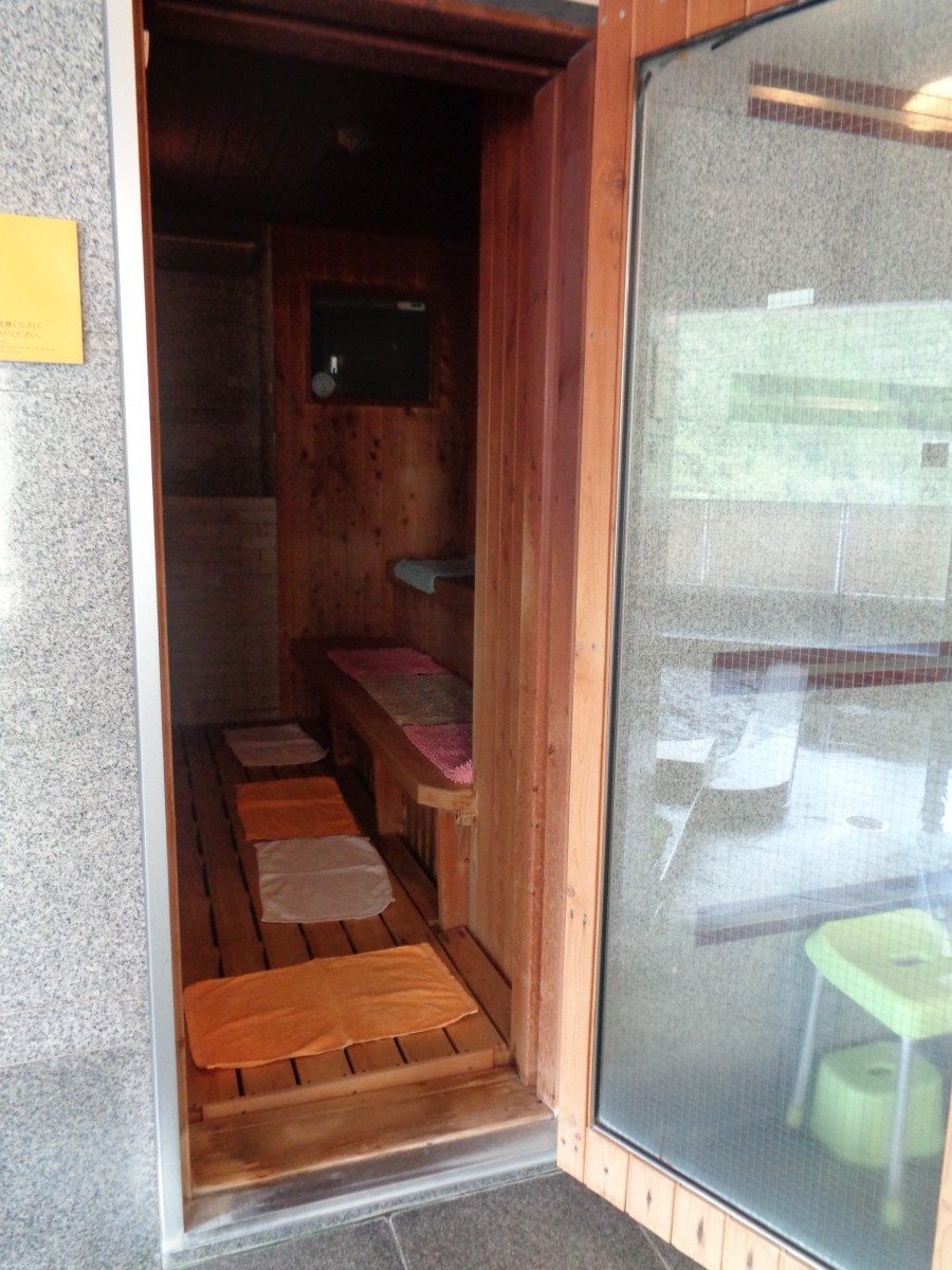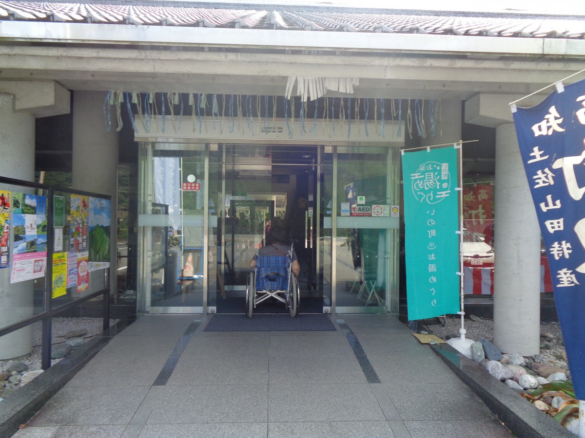 大浴場棟入口 段差11センチ 常設スロープの幅98センチ 長さ80センチ 傾度12度 介助者の同行が望ましい