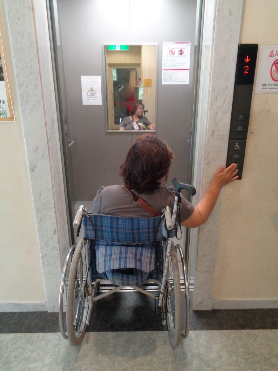 大浴場棟の車いす対応エレベーター 車いす利用者は客室2階に行く際に利用すると移動がスムーズ