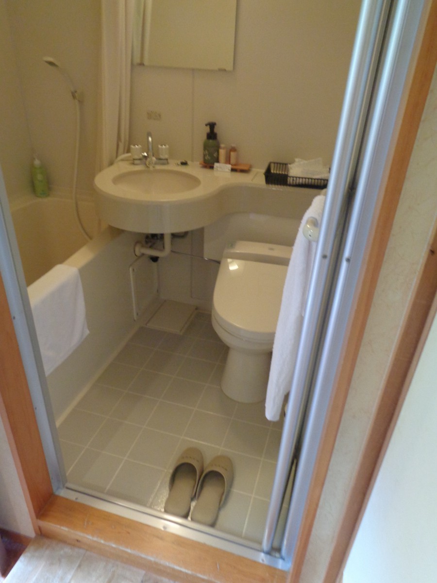 客室は洗面・バス・トイレ一体型 折れ戸 入口幅63センチ 段差8センチ