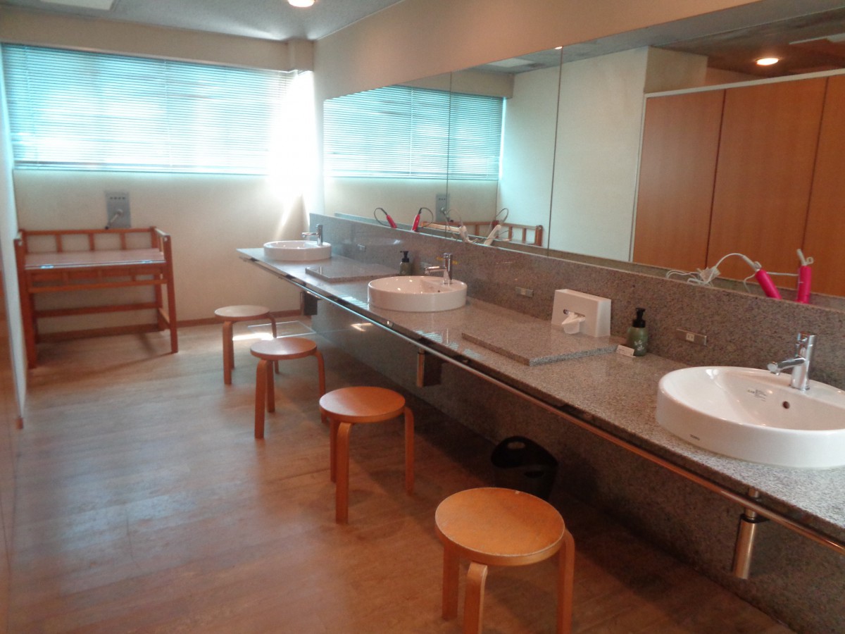 大浴場洗面台の下は車いすで足が入る ベビーベッドあり