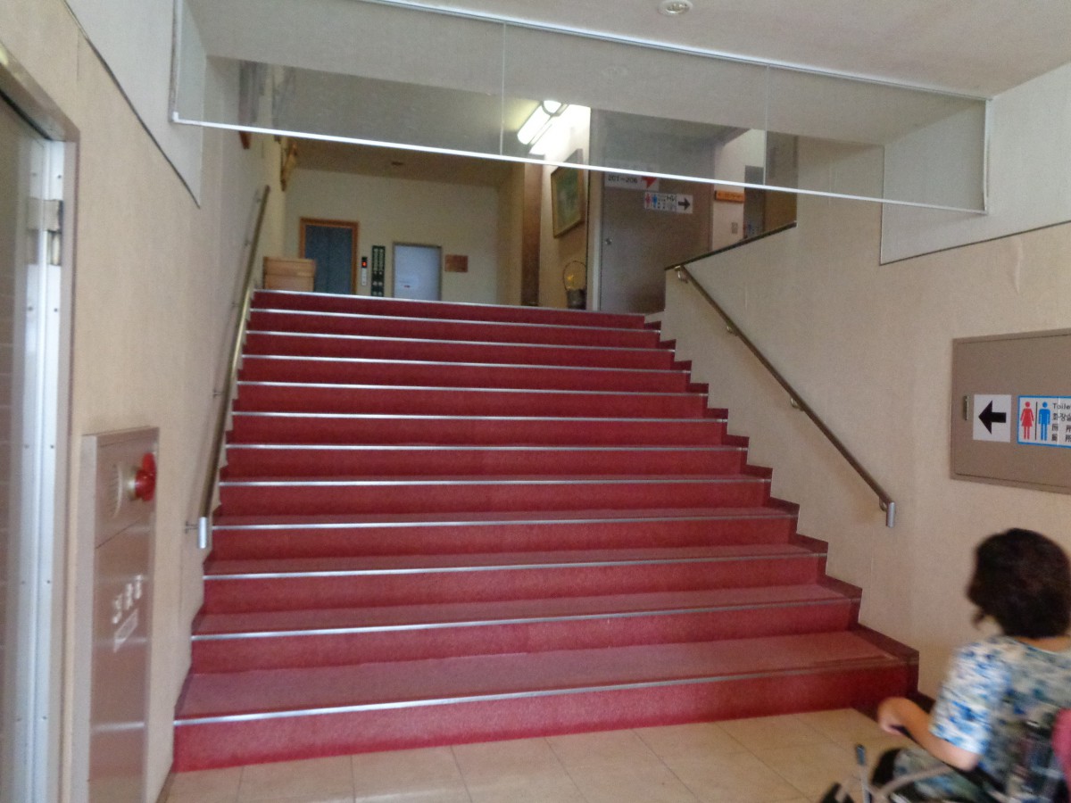 1階から2階、6階から7階は階段しかない 昇降が困難な方はスタッフがお手伝いします 予約を検討の際に相談ください