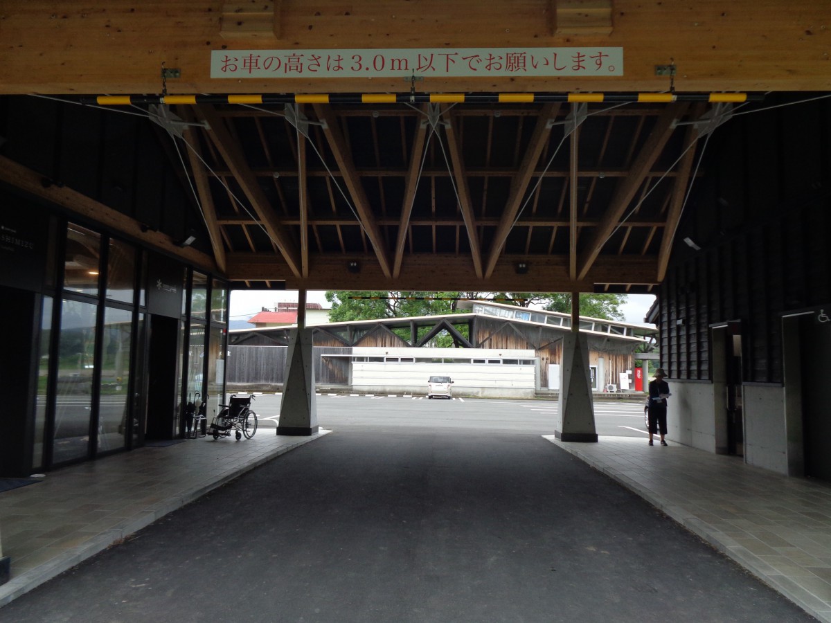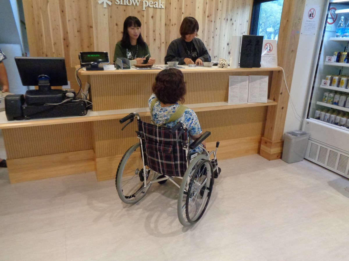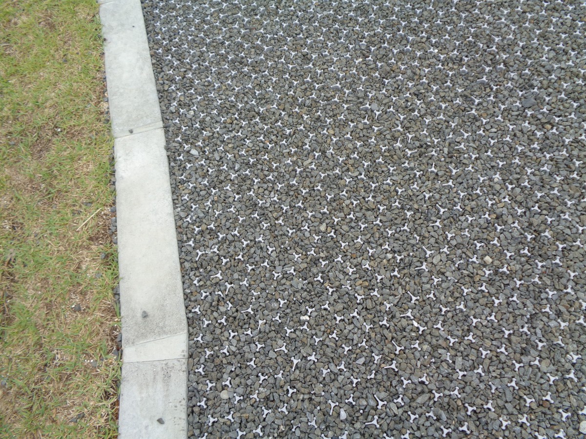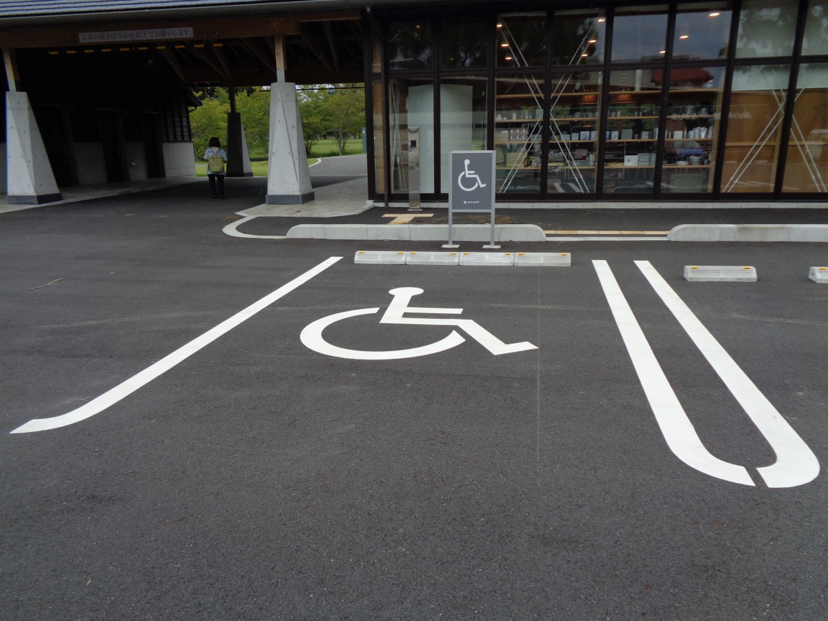 通路は砂利で、砂利止めが敷設されているが、車いすでの移動はやや困難