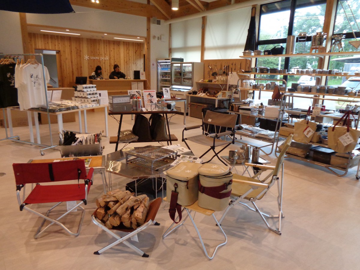 管理棟内にはスノーピーク直営店がある 薪の販売もしている