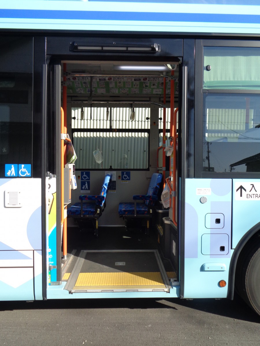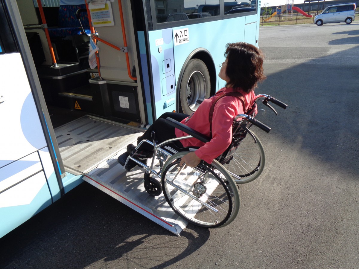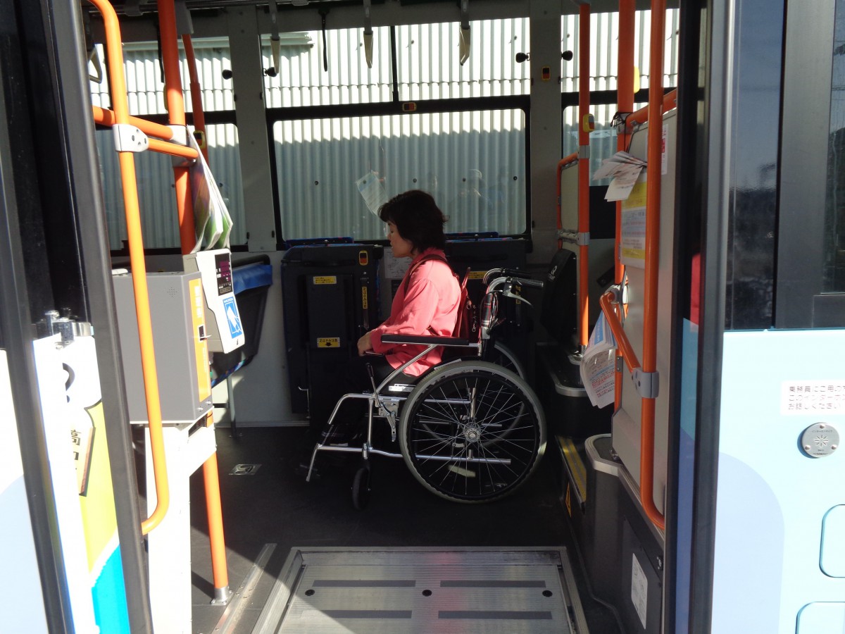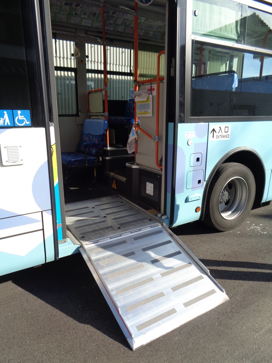 バス車両 低床車両 車いす利用者は事前連絡が必要(座席用意のため)