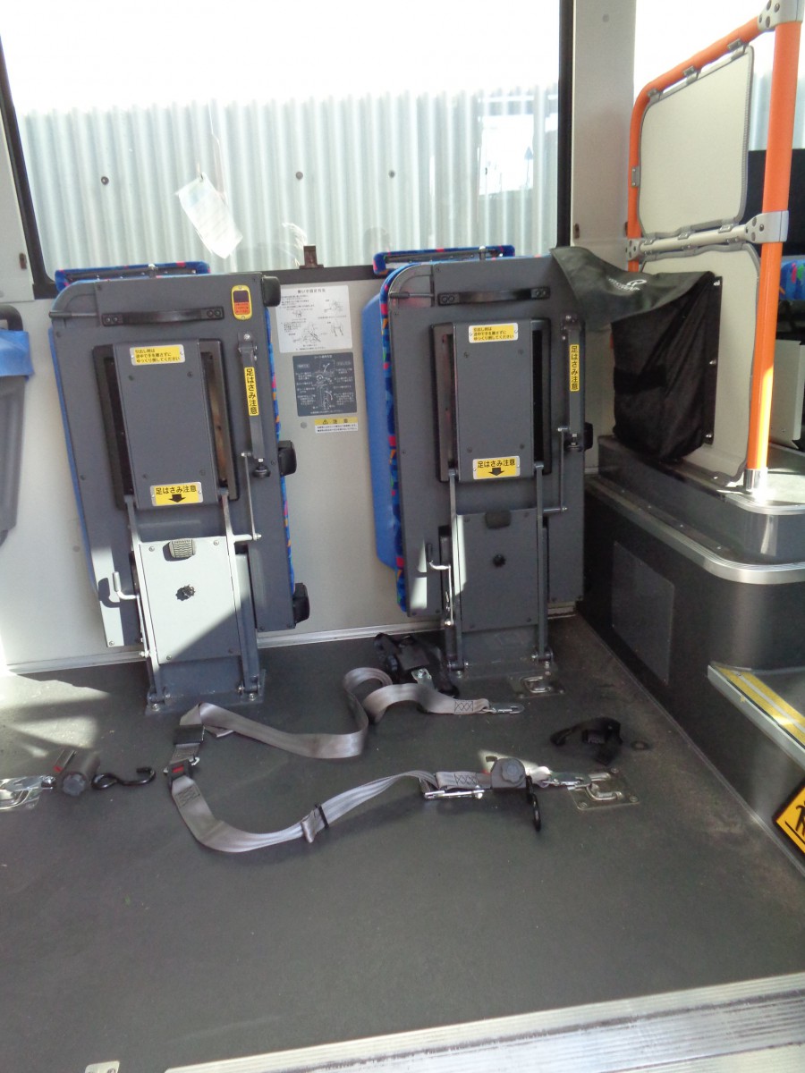 車いす対応座席 走行時の安全のため専用の器具で固定