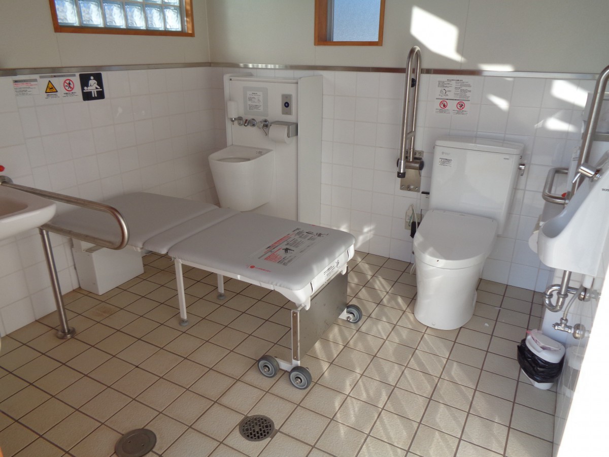 待合室内 一般共用トイレ男性用・女性用あり 営業所内に車いす対応トイレはないため、南側にある公園の公衆トイレを利用
