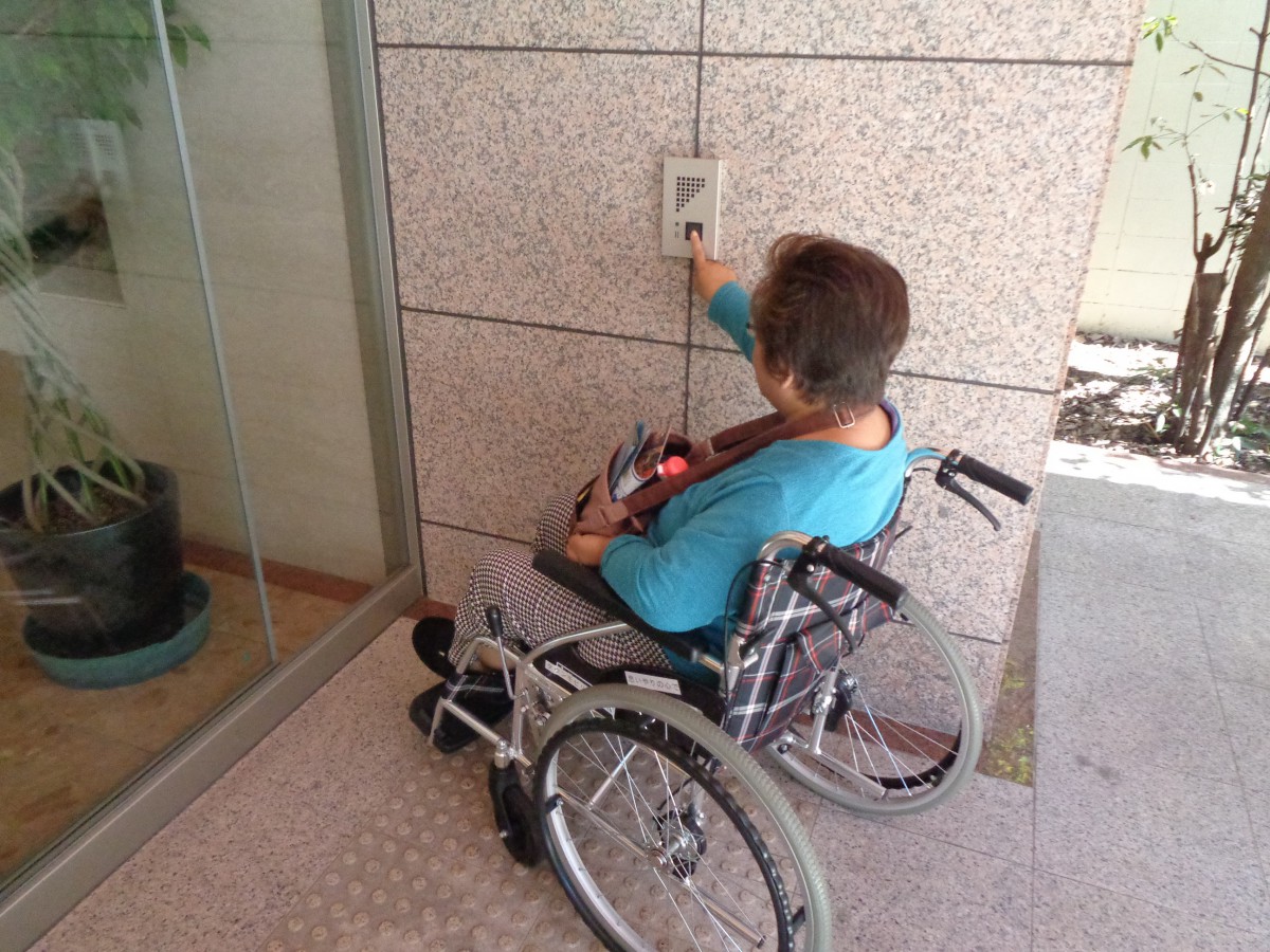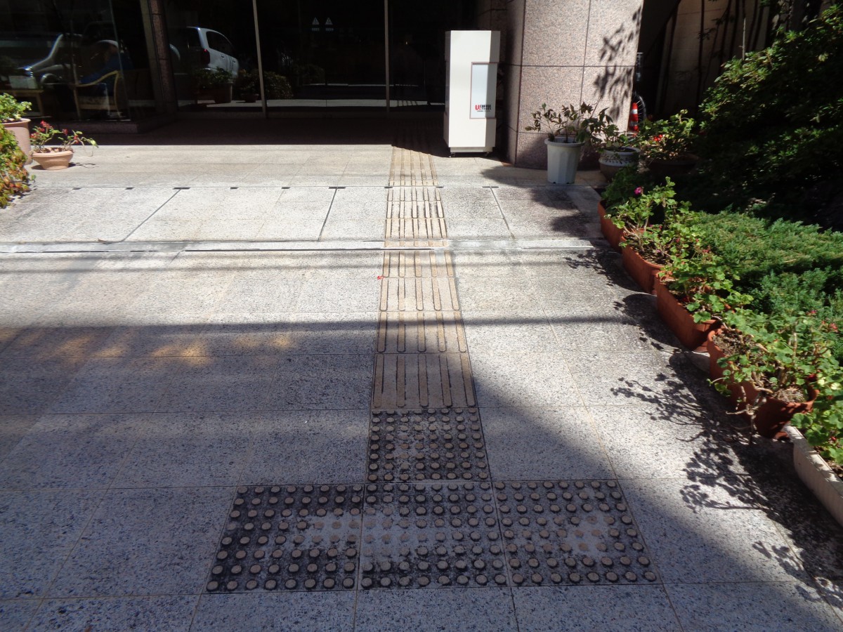 点字ブロックは正面入口のインターフォンまで続いている