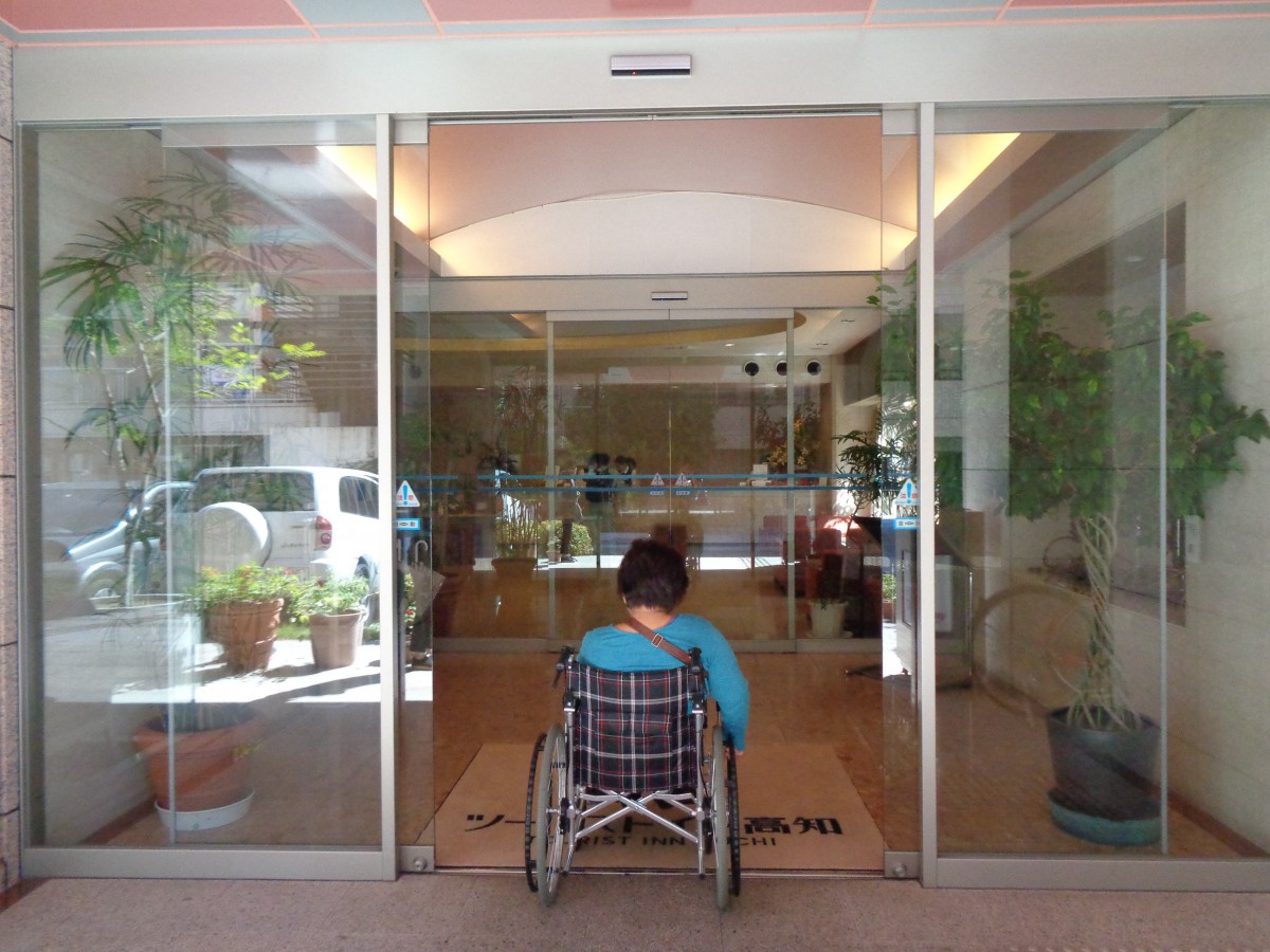 正面入口 自動ドアまで緩やかな傾斜あり