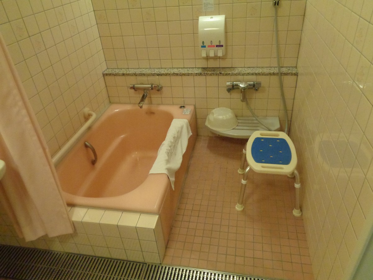 手すりは浴槽奥の壁面 浴槽内側にあり シャワーチェア常時設置