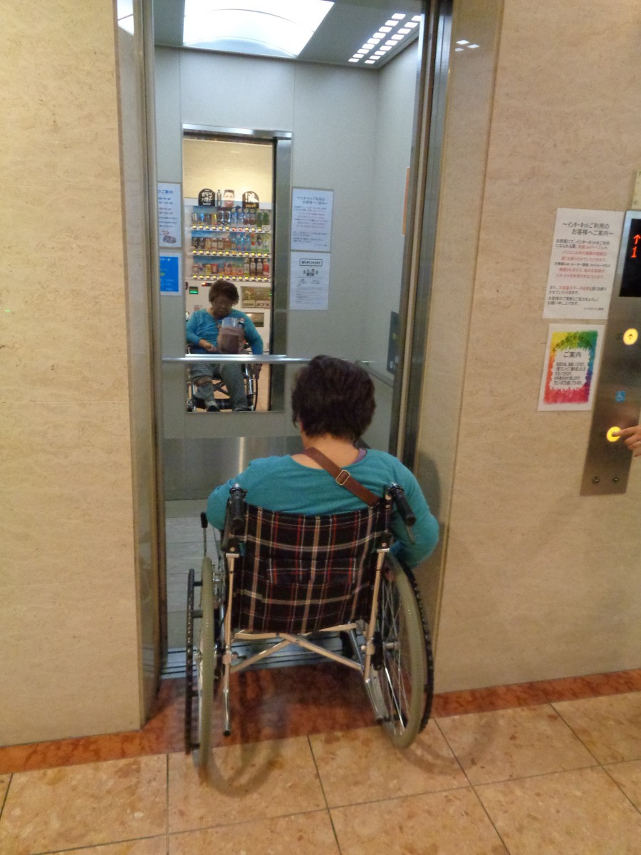 車いす対応エレベーター2基あり 入口幅78センチ