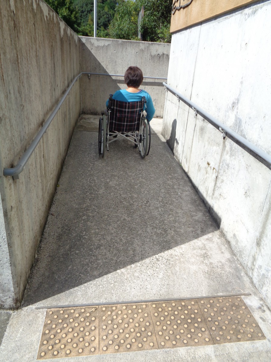 スロープ 駐車場から本館入口まで緩やかな傾斜あり