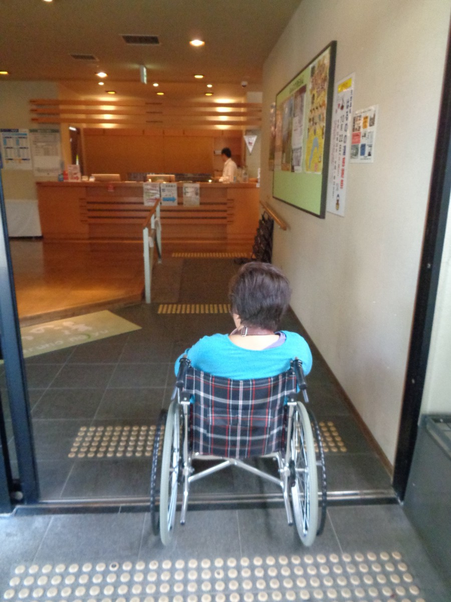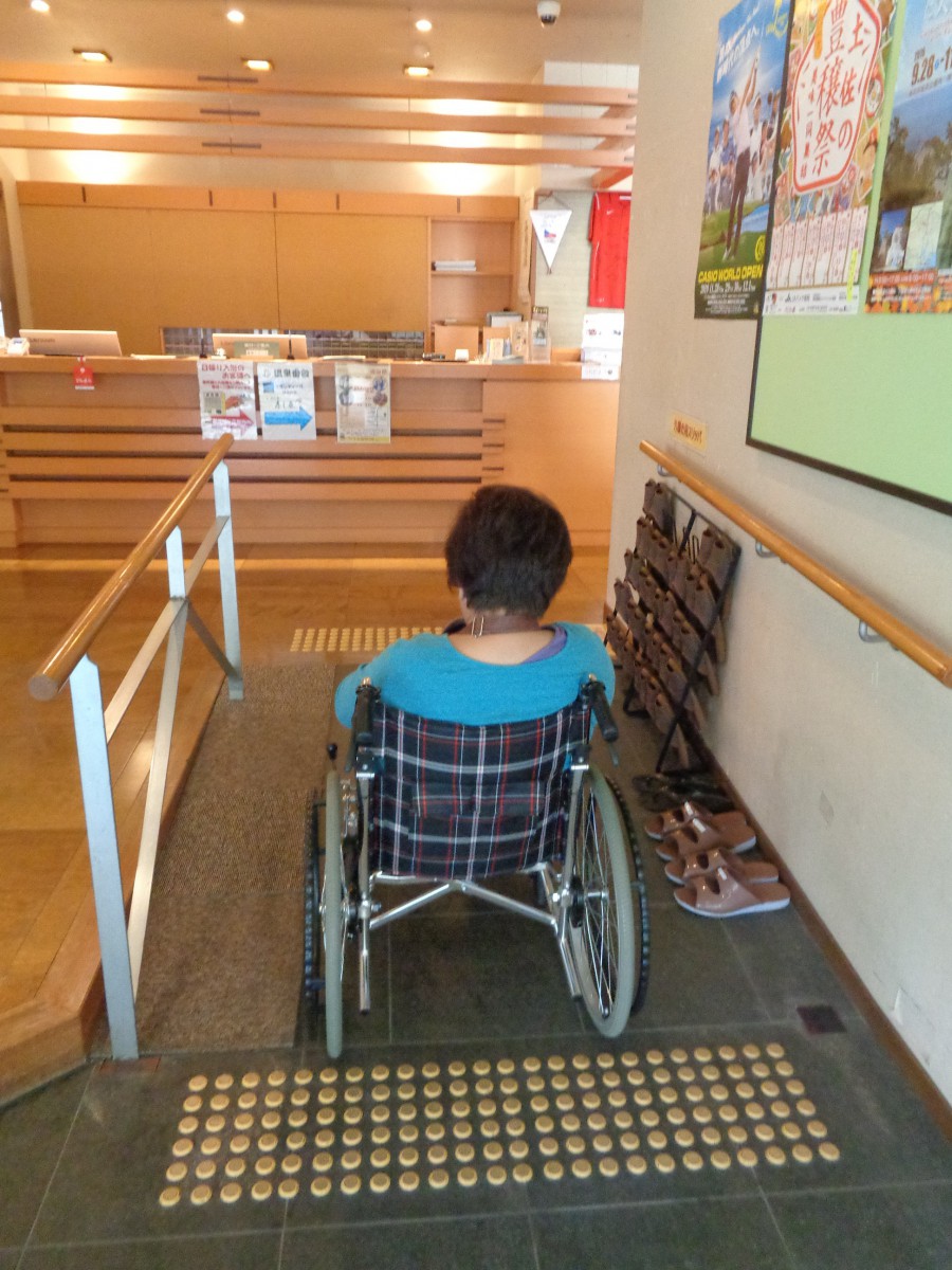 館内土足禁止 車いすはタイヤを拭くこと 段差1段(11.5センチ) 常設スロープあり
