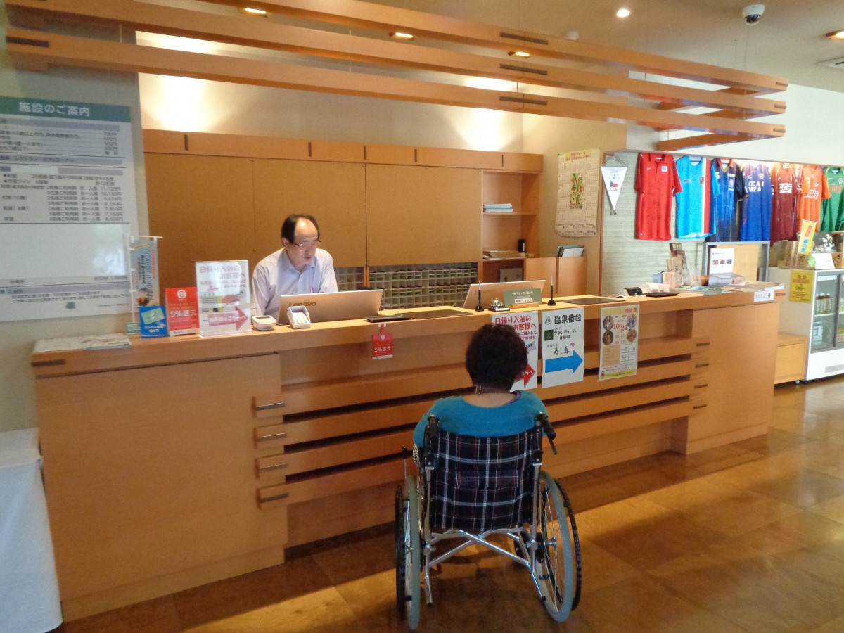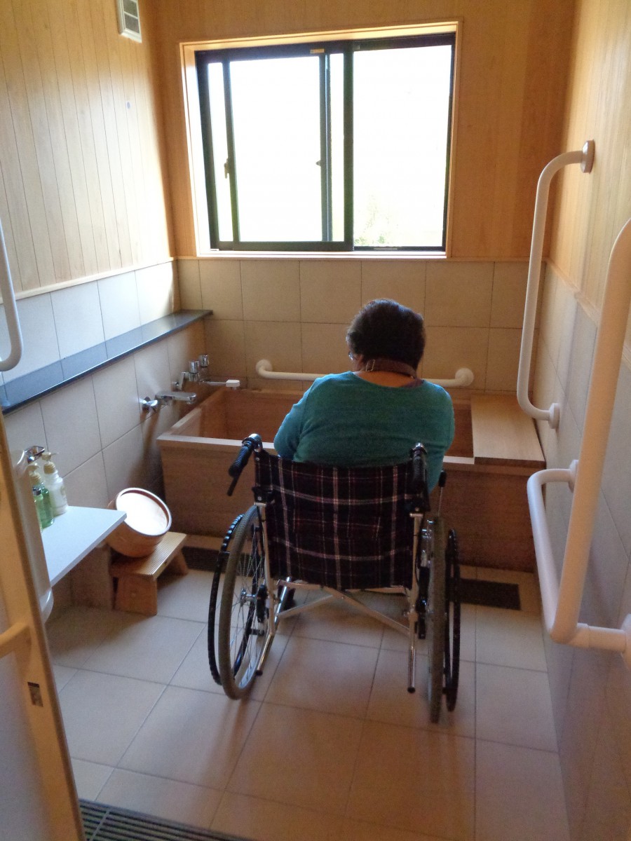 ログハウス 貸切風呂2室あり シャワーチェアは大浴場のものを要望があれば設置可能 手すりは浴室入口、洗い場、浴槽の壁にあり