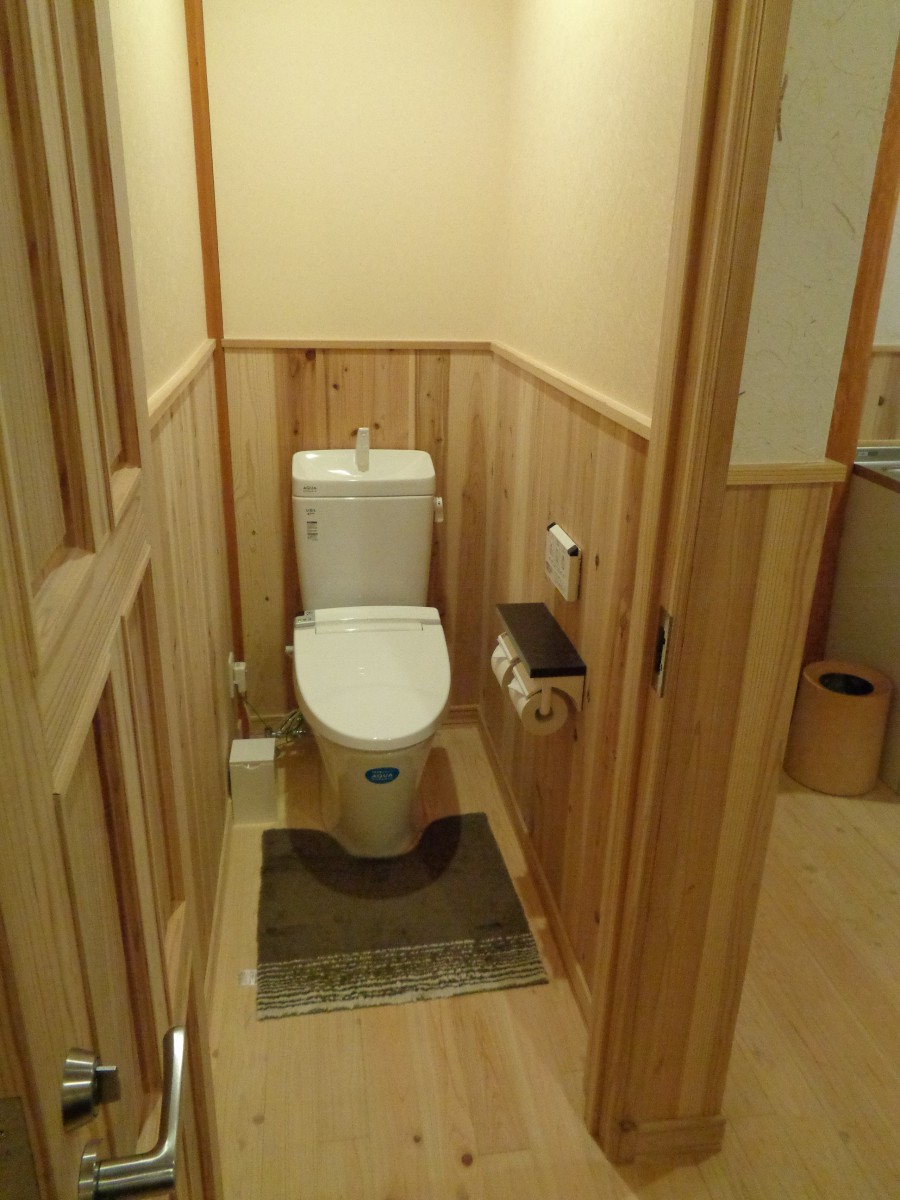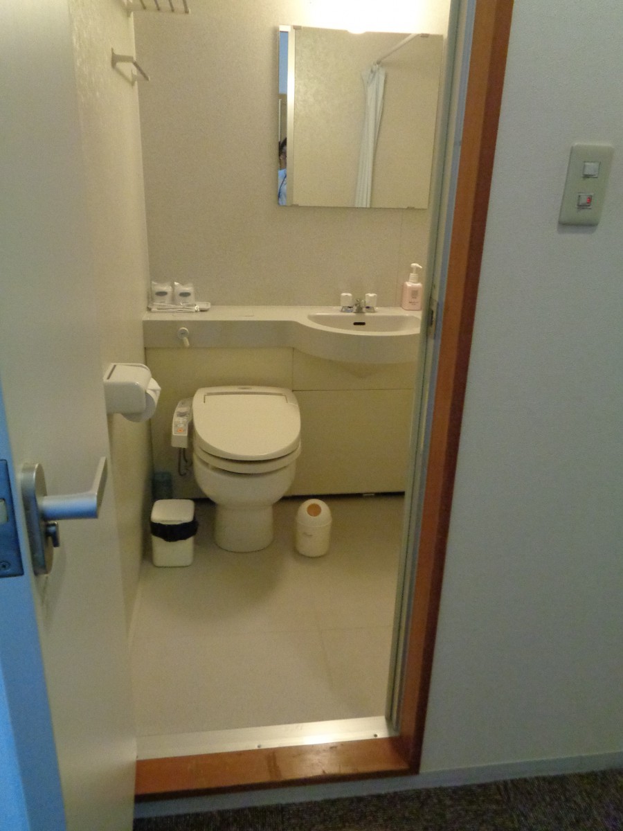 客室トイレ 開き戸 入口幅61センチ ドア下段差なし 温水洗浄便座つき