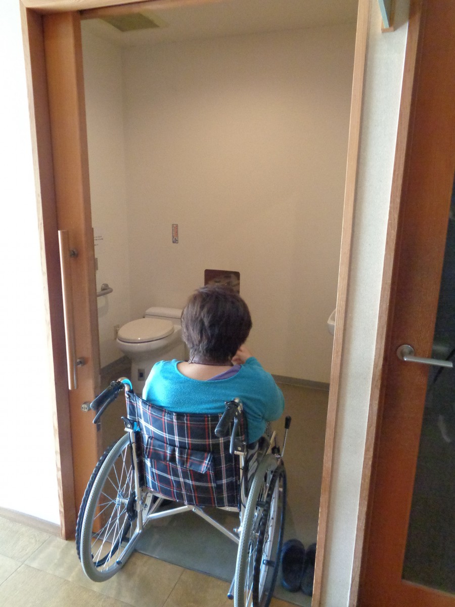 本館車いす対応トイレ入口 スライド戸 入口幅90センチ